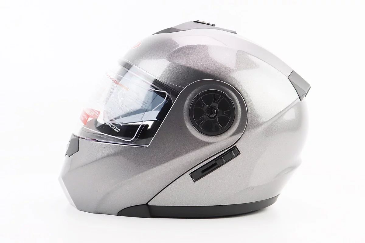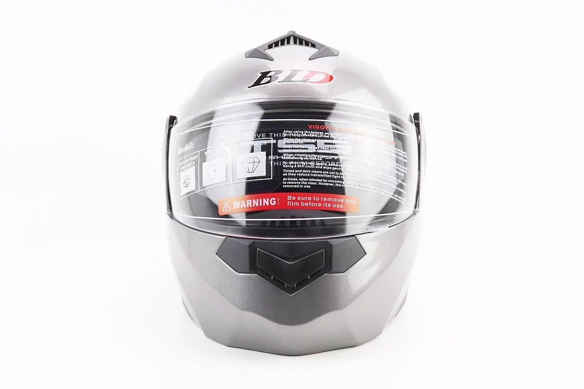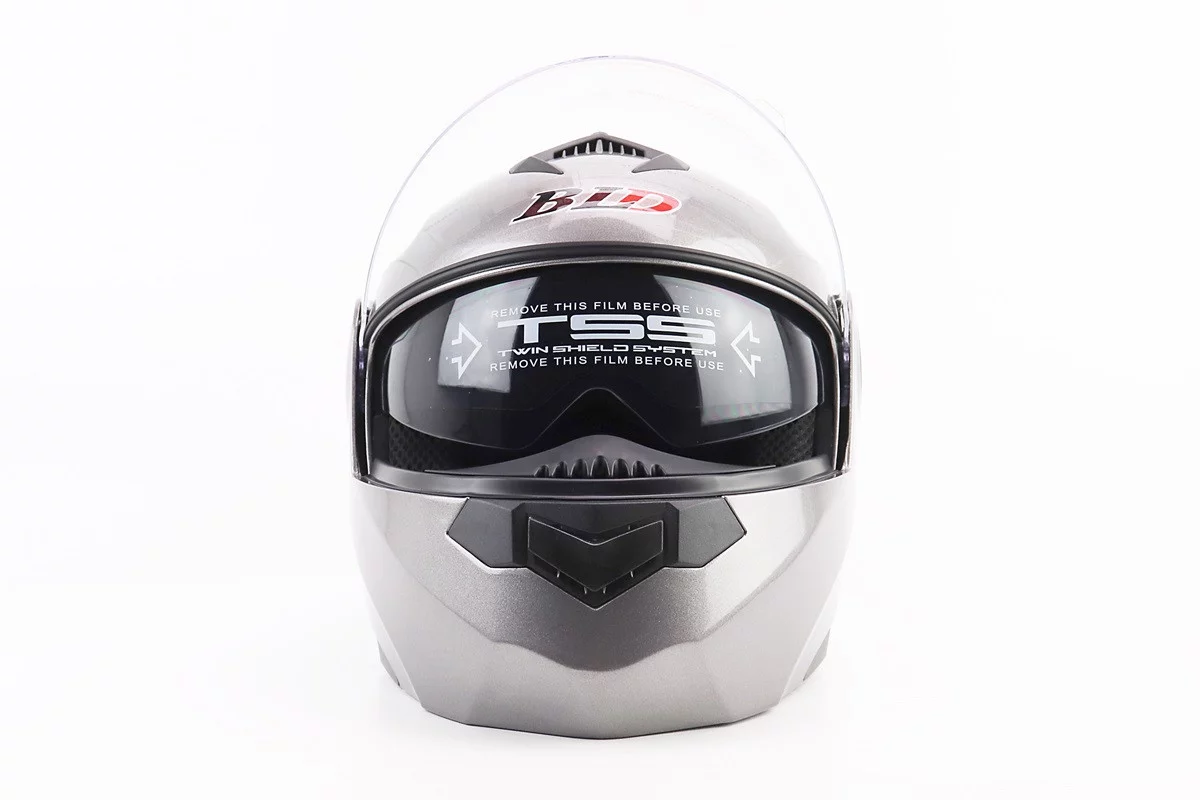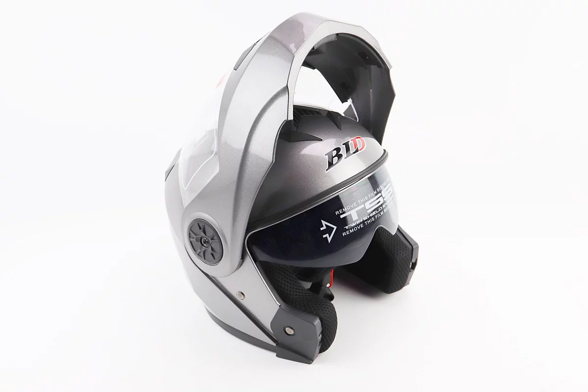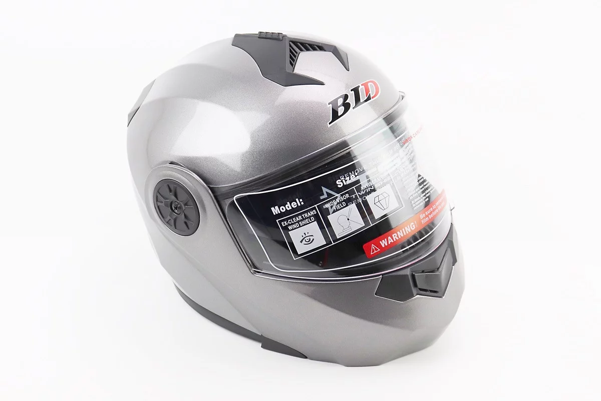 Шлем модуляр, закрытый с откидным подбородком+откидные очки BLD-159 М (57-58см), СЕРЫЙ глянец