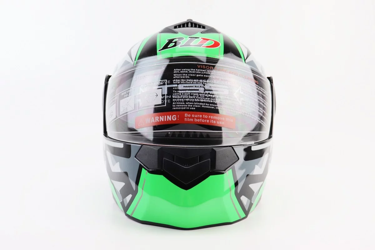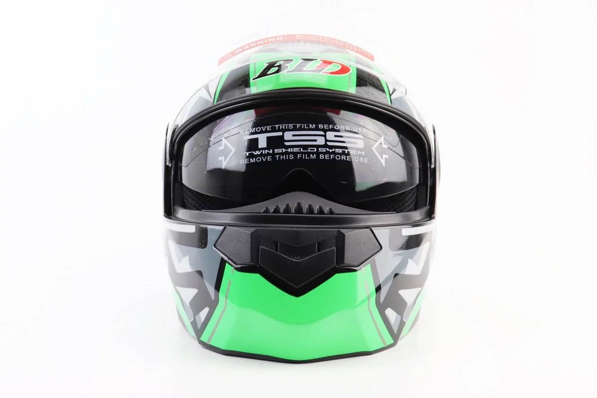 Шлем модуляр, закрытый с откидным подбородком+откидные очки BLD-159 S (55-56см), ЧЕРНО-ЗЕЛЕНЫЙ