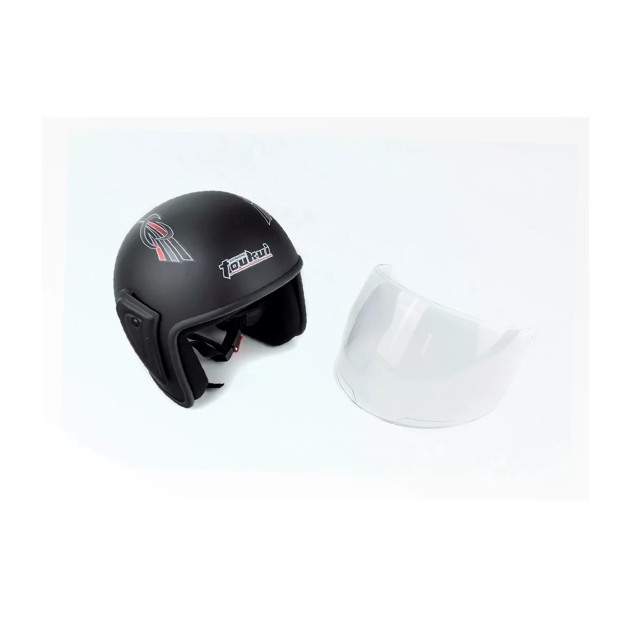 Шлем открытый HK-215, чёрный матовый с красно-серым рисунком (незначительные отличия рисунков), ШОЛОМИ, YQ-330535
