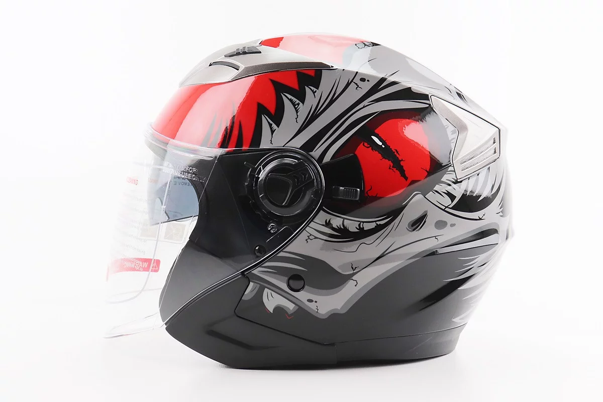 Шлем открытый+откидные очки BLD-708 S (55-56см), ЧЕРНО-КРАСНЫЙ "Raptor"