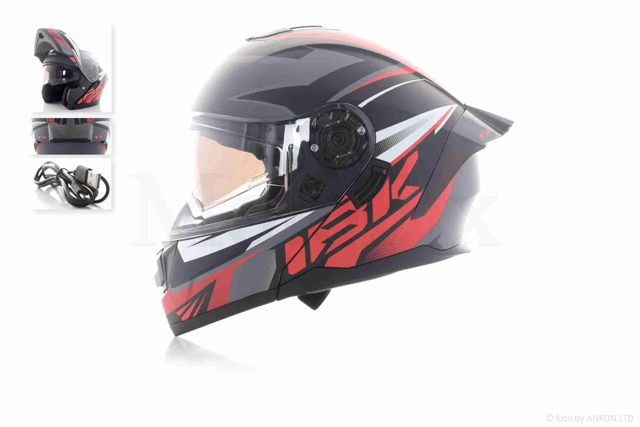 Шлем трансформер "IBK" (#965A габарит 3 режима, черно-красный матовый, IBK, L, очки), QT-036122