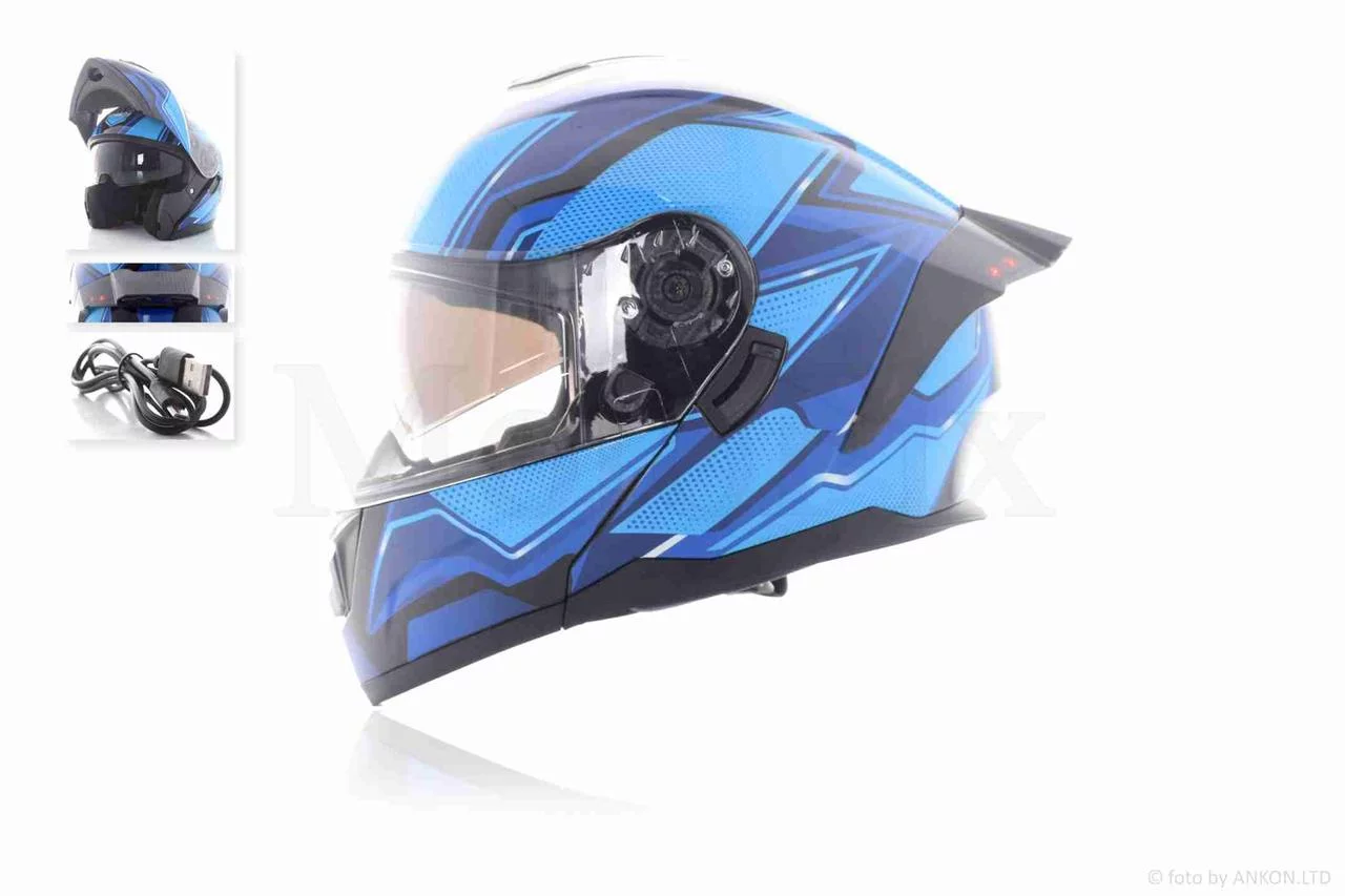 Шлем трансформер "IBK" (#965A габарит 3 режима, синий, L, очки), QT-035044