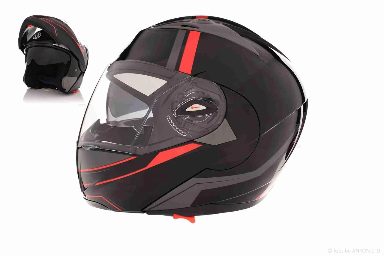 Шлем трансформер "VLAND" #158, черно-красный, очки, L