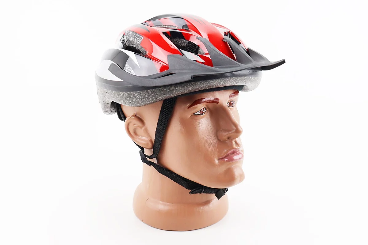 Шлем велосипедный M (54-57 см) съёмный козырёк, 12 вент. отверстий, красный MJ-004
