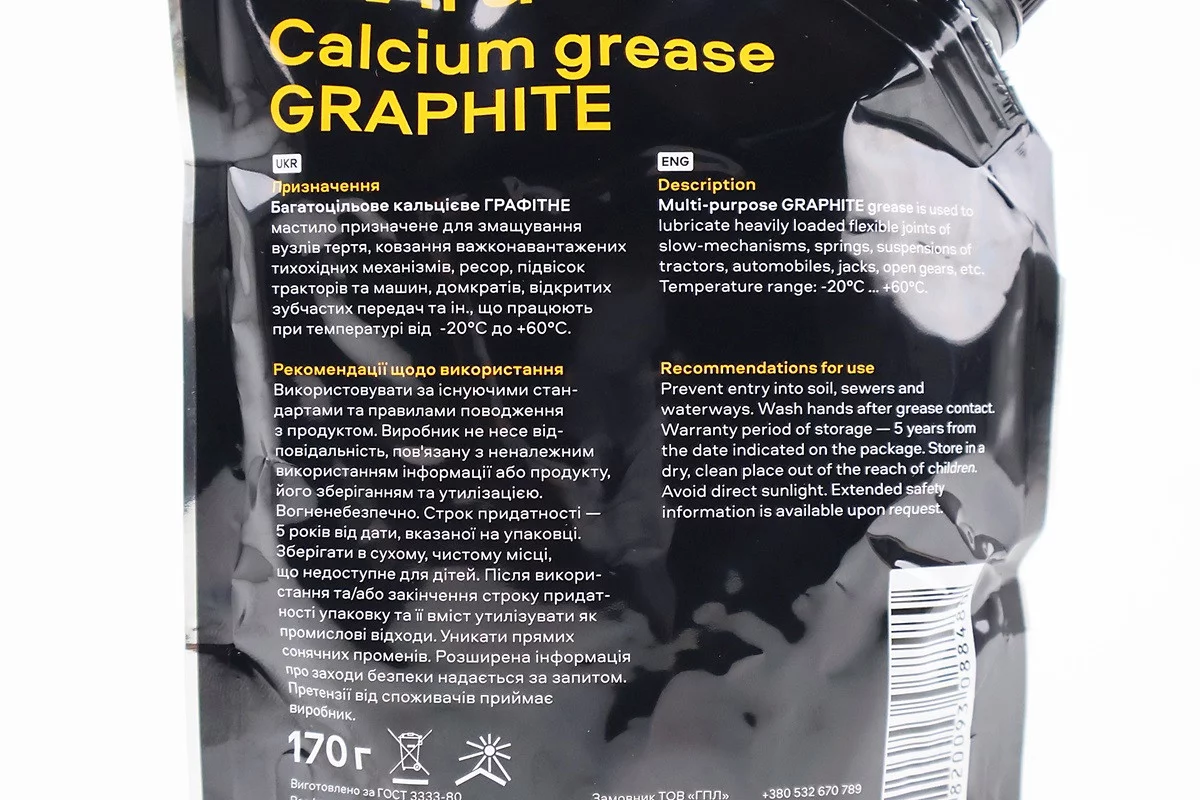 Смазка для тяжелонагруженных тихоходных механизмов "ГРАФИТНАЯ NLGI-2", 170g Дой-пак