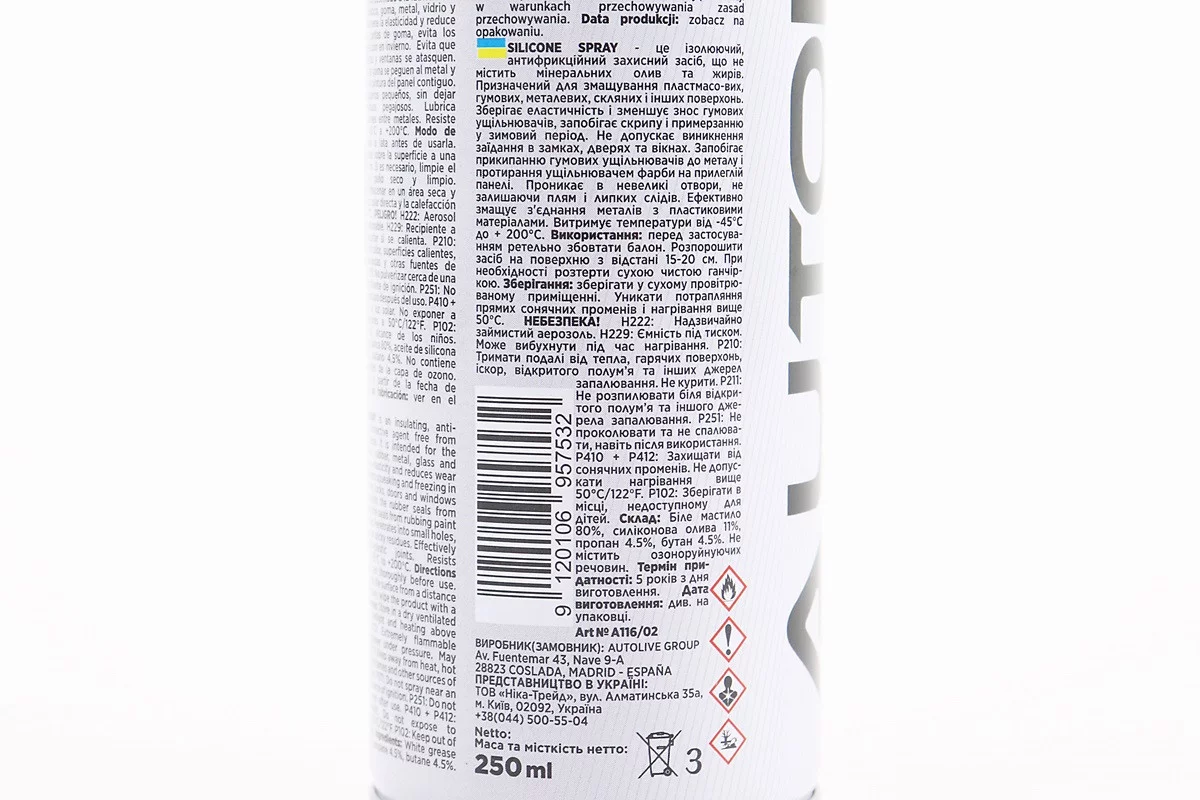 Отзывы Смазка силиконовая, водоотталкивающая "SILIKONE SPRAY", Аэрозоль 250ml, FIX-207862