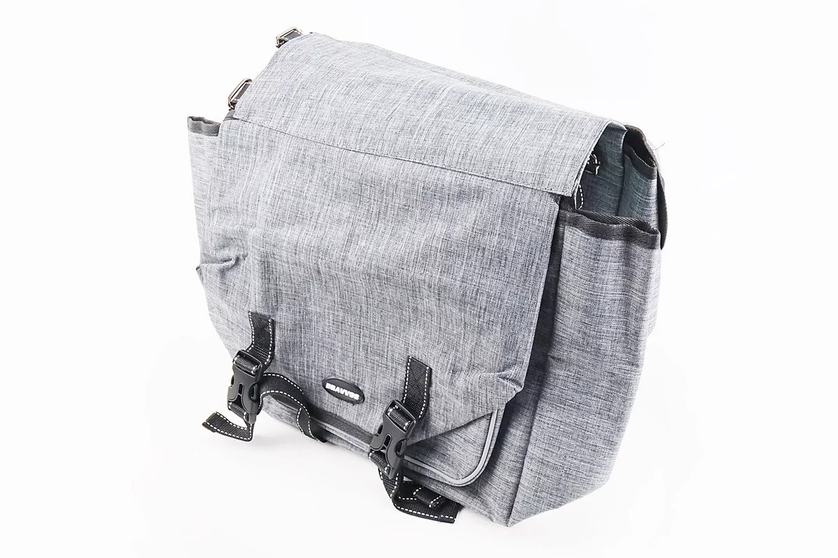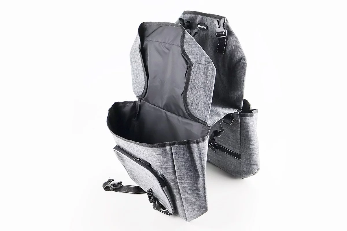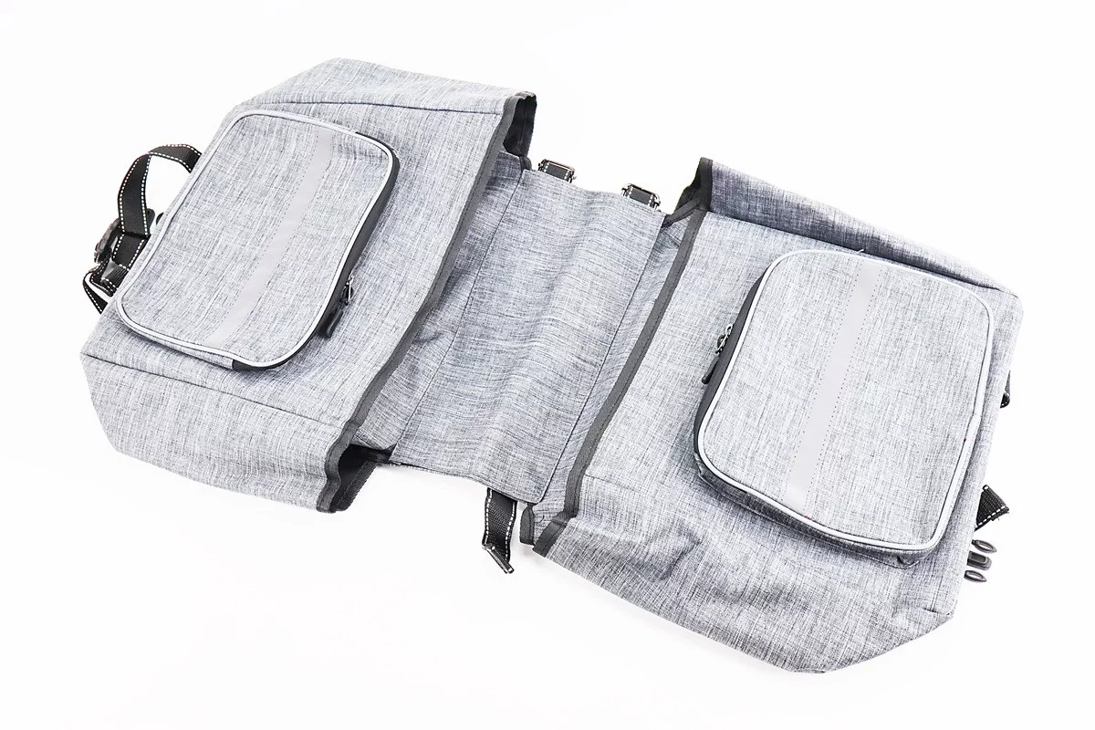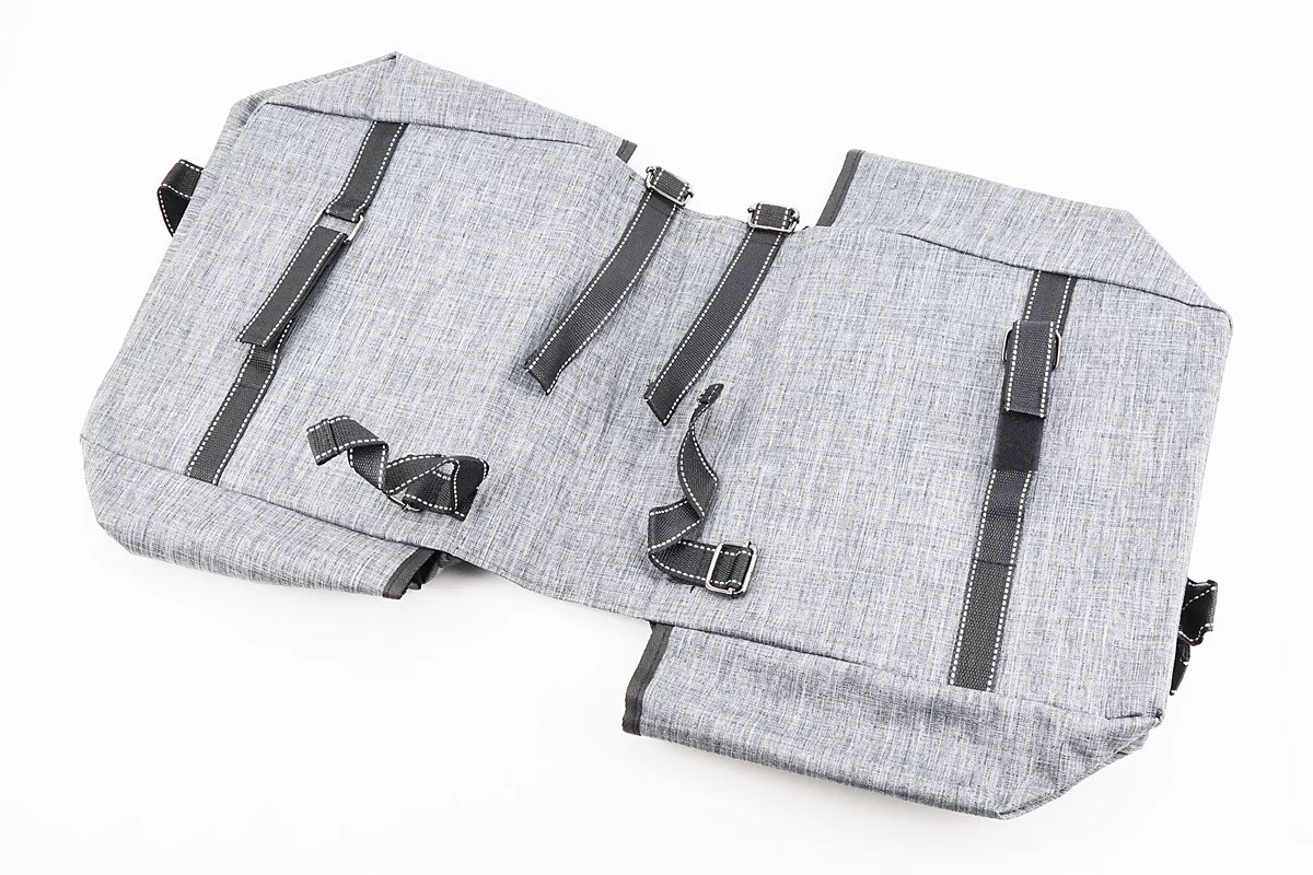 Сумка-штаны на багажник, с влагозащитными 4 отделениями, крепл. на липучке, светоотражающие полосы, серая