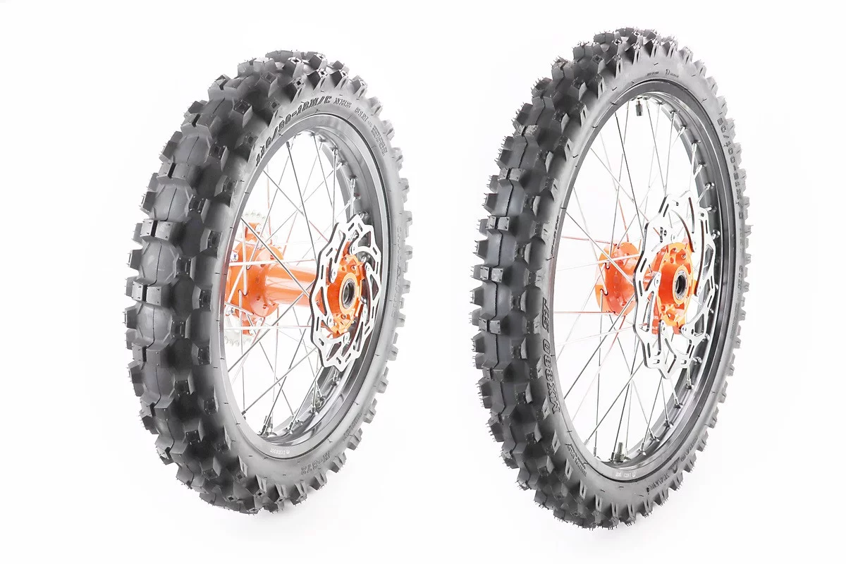 Terra-X 250 (2019) Колесо переднее спицованное в сборе 1,6-21+ Колесо заднее спицованное в сборе 2,15-18 +дики тормозные + звезда, ОРАНЖЕВЫЙ