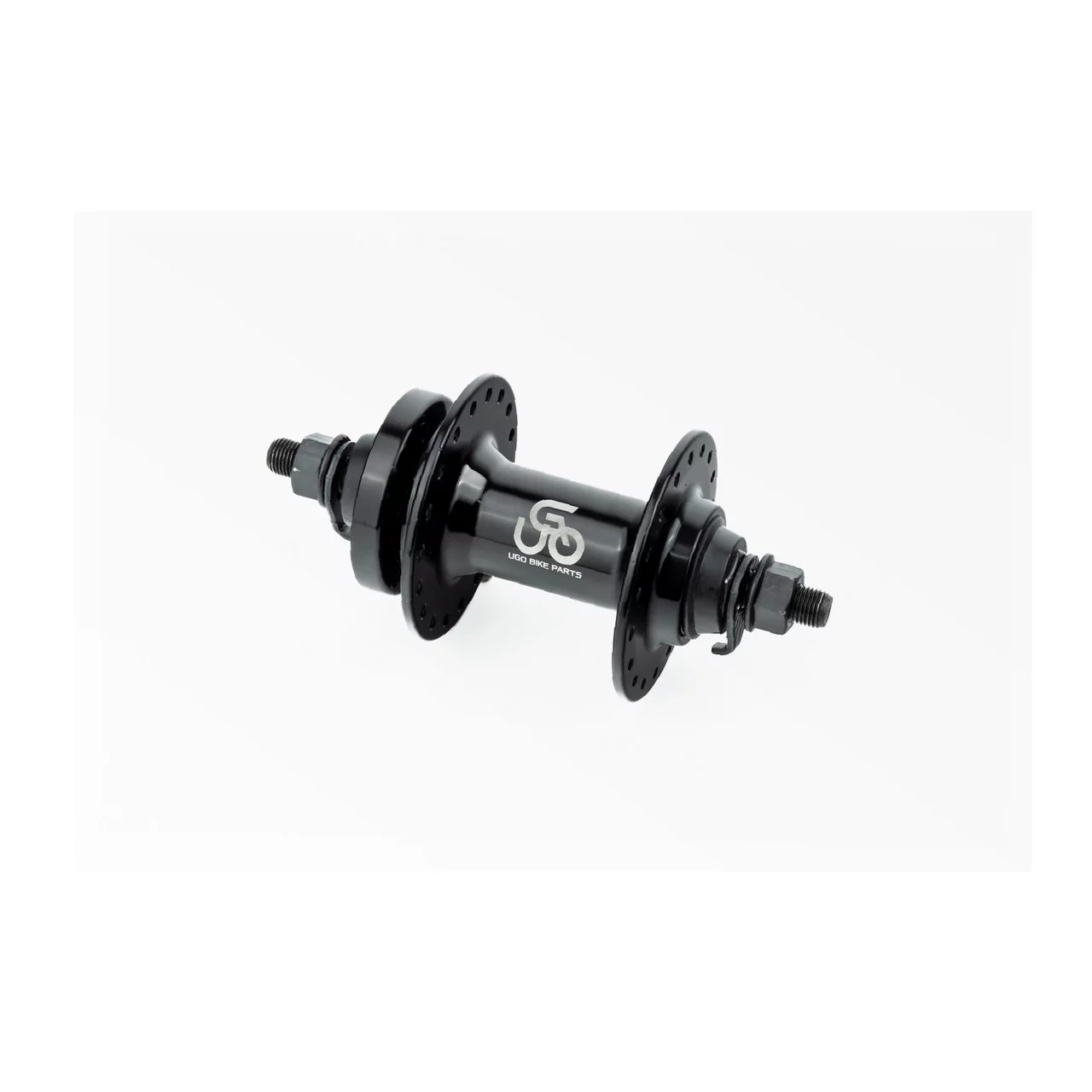 Втулка передняя MTB алюминиевая 14Gx36H, Disk-brake, 2 пром-подшипники 6200 2RS, крепл. гайка, чёрная U-B07F, ВЕЛОЗАПЧАСТИНИ,