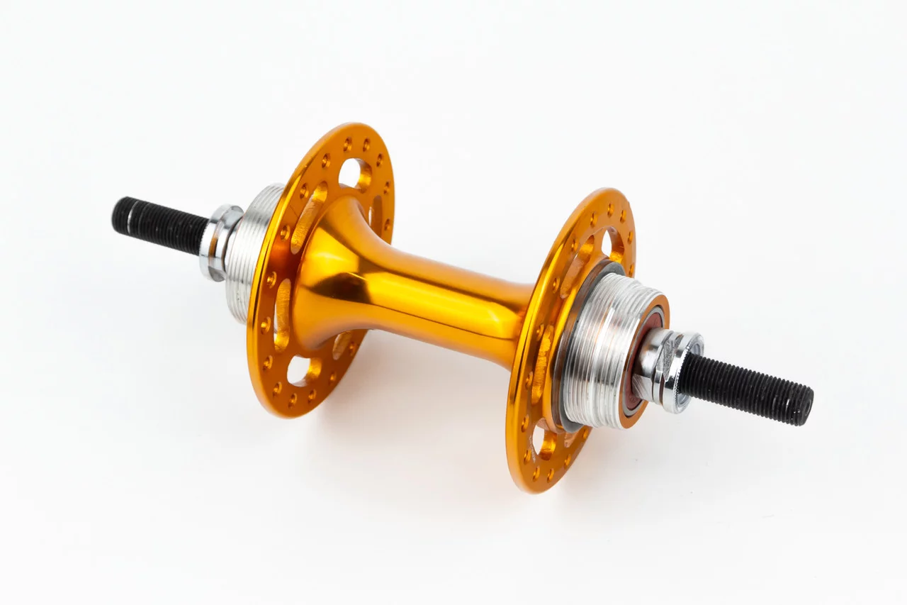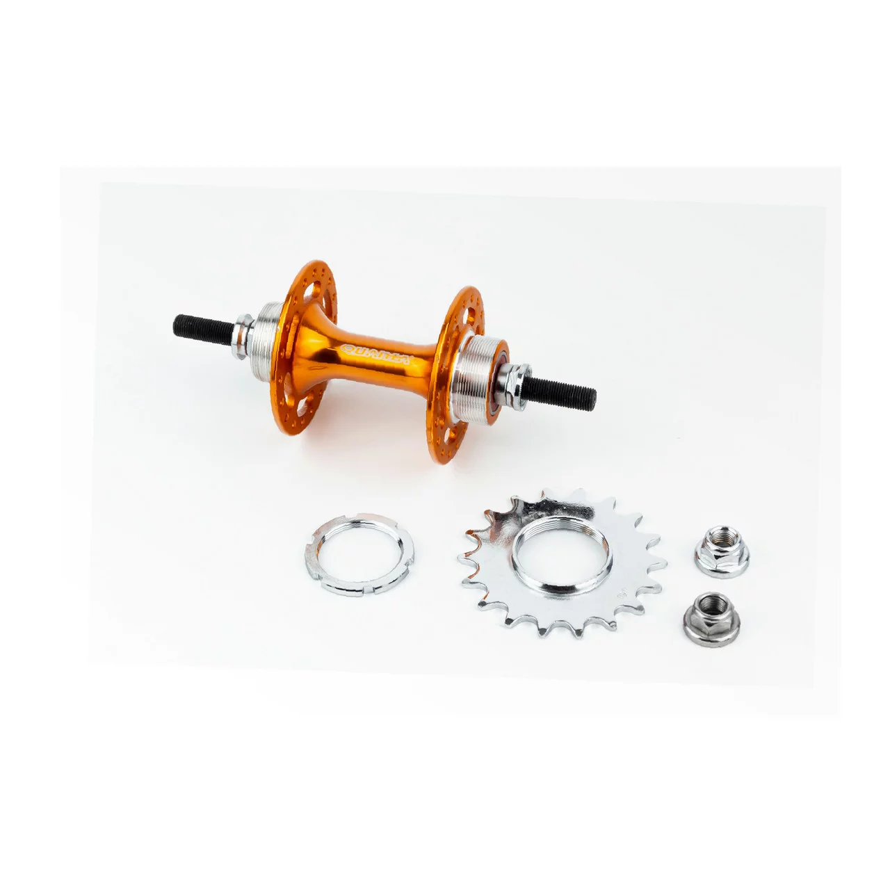 Втулка задняя FIX алюминиевая 14Gx36H с фиксированной передачей 18Т, резьба Flip-Flop, 2 пром-подшипники 6000 2RS, крепл. гайка, золотистая KT-DP6R, ВЕЛОЗАПЧАСТИНИ