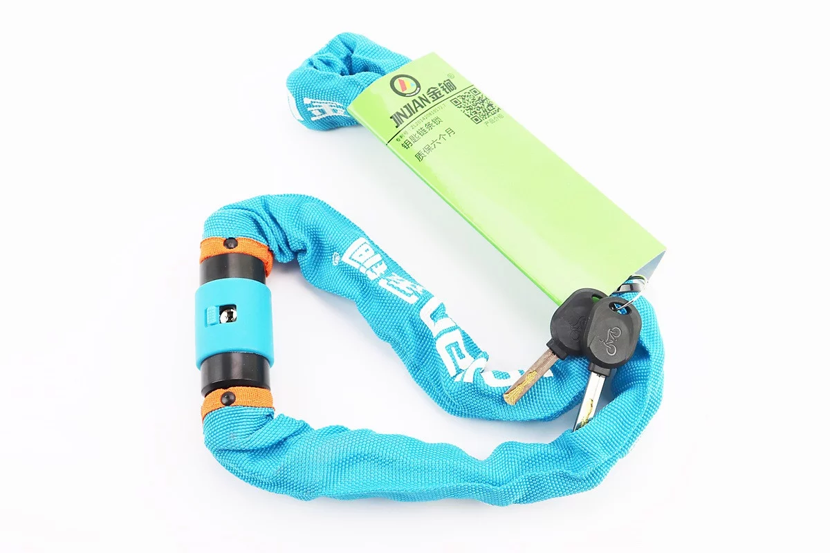Замок противоугонный цепной 1000х6мм под ключ, голубой 605