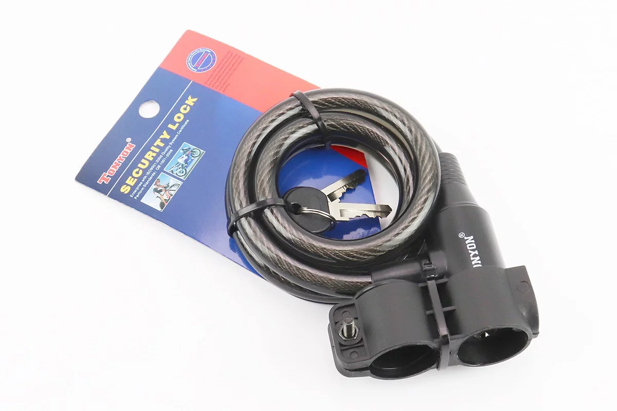 Замок противоугонный тросовый 1000х12мм под ключ, крепл. за трубу сидения, TY505