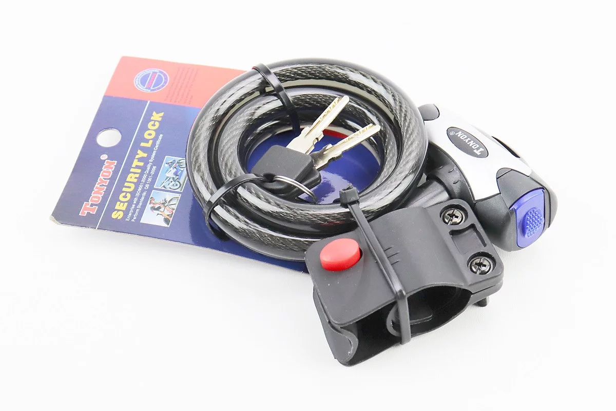 Замок противоугонный тросовый 1000х12мм под ключ, крепл. за трубу сидения, TY555