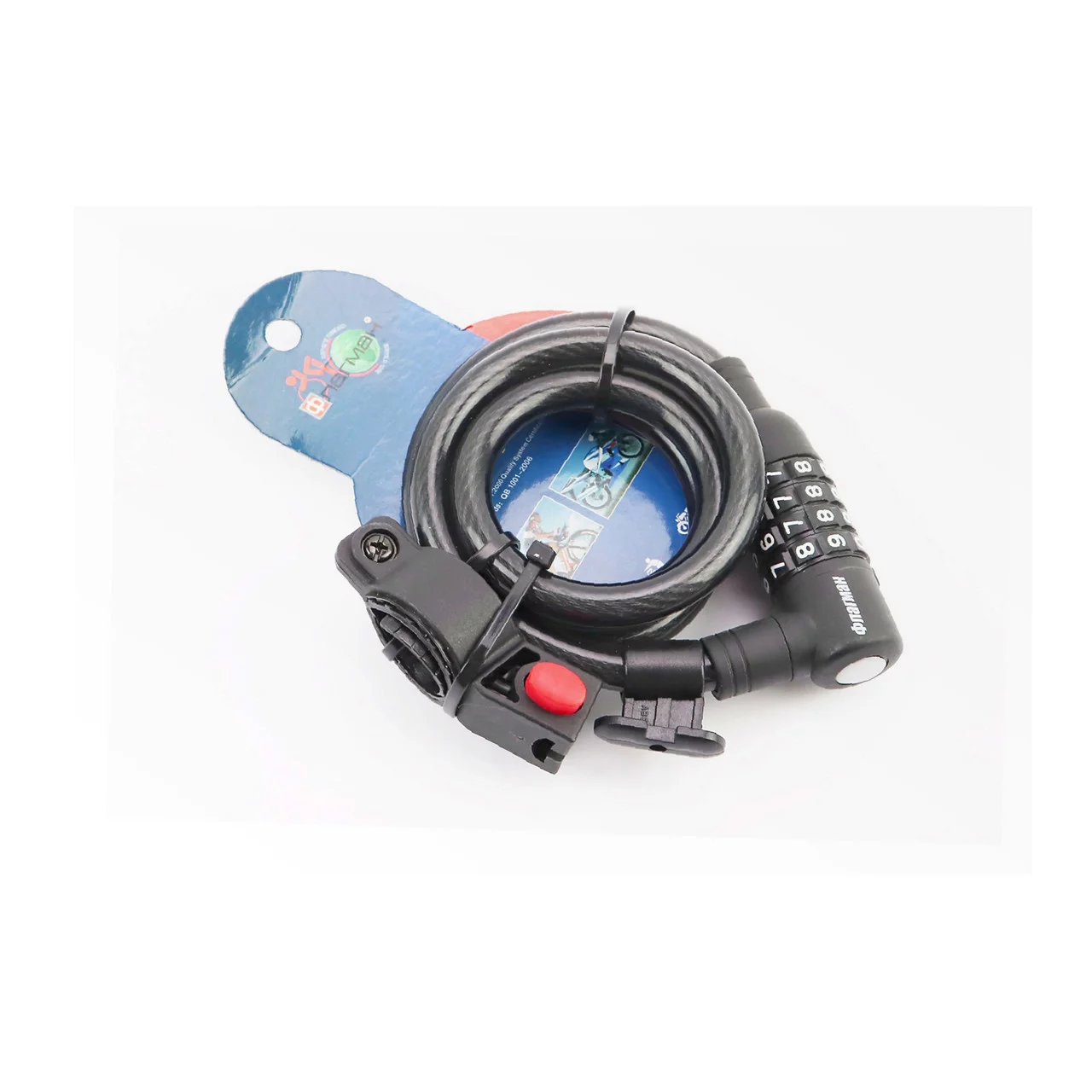 Замок противоугонный тросовый 1000х12мм с 4-х значным кодом, крепл. за трубу сидения, TY535, ВЕЛОАКСЕСУАРИ, YQ-409839