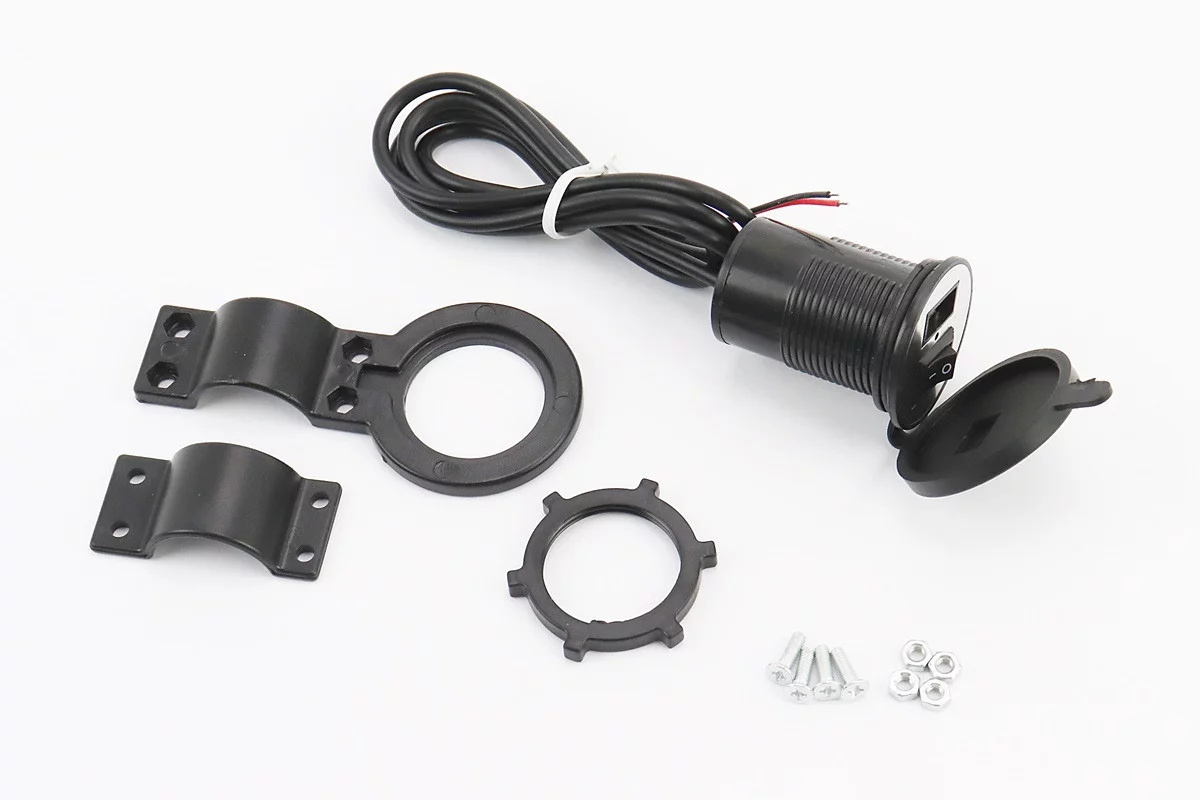 Зарядка USB универсальная на 1 выход, с кнопкой вкл/выкл (крепление в пластик/на руль)