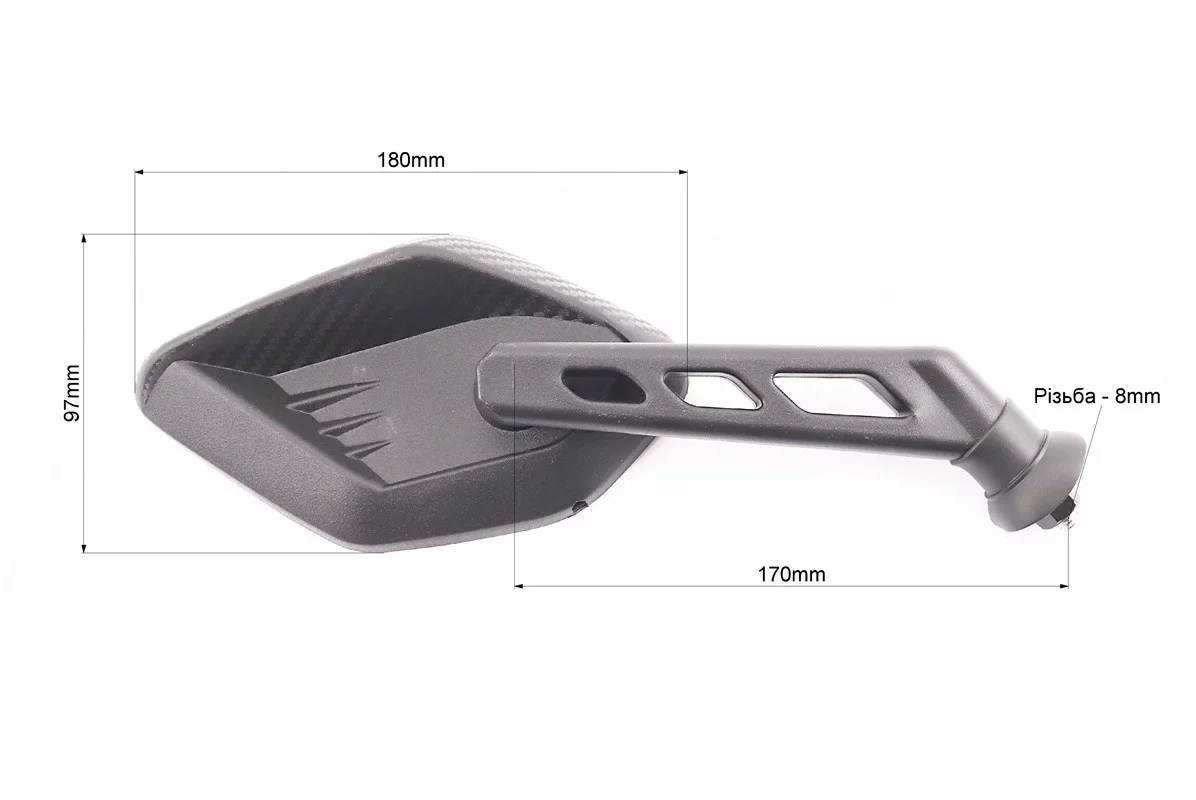 УЦЕНКА Зеркало "STORM" левое, черное с поворотом, м8 (потёртости), FIX-207304