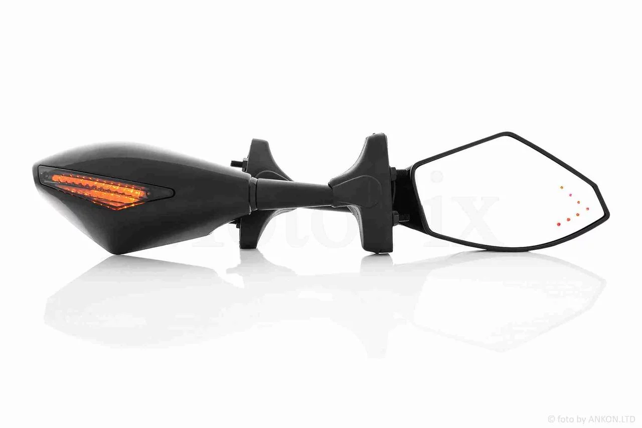 Зеркала мото с диодными повторителями поворота черные, шпильки 30-65mm #171