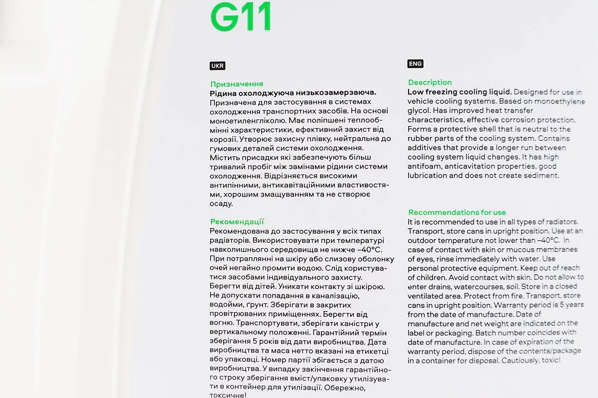 Жидкость охлаждающая -40°C "АНТИФРИЗ G11", зеленая 5kg