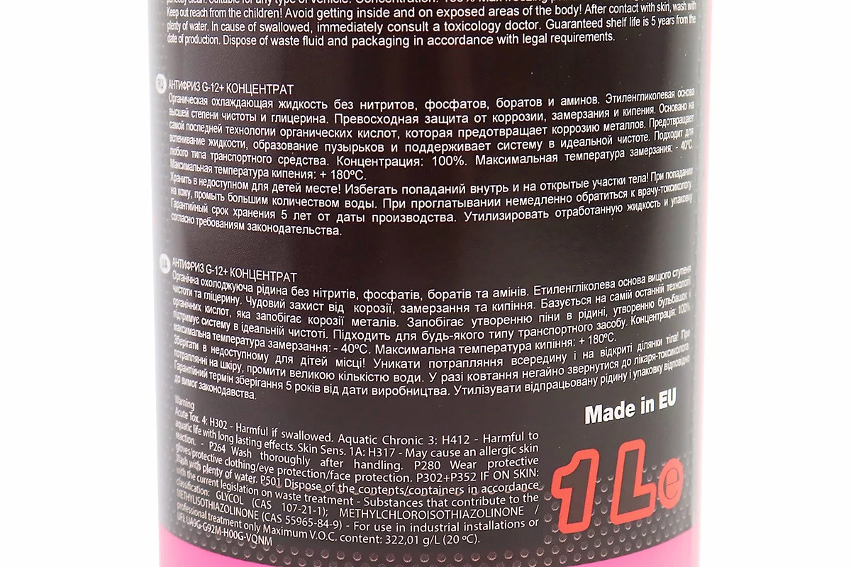 Жидкость охлаждающая концентрат -38°C 1:1 "АНТИФРИЗ G12+", красная 1L