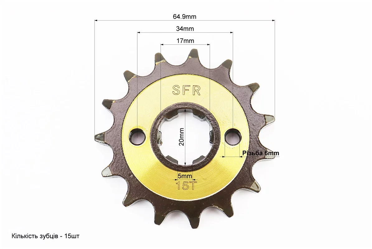 Звезда передняя CG/CB-428H-15T (под шлиц 5мм) Loncin JL200-68A/LIFAN "каленая", FIX-201933