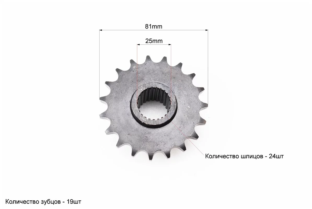 Звезда приводная задняя шлицевая 428-19T (втулка d=25mm, L=32mm)