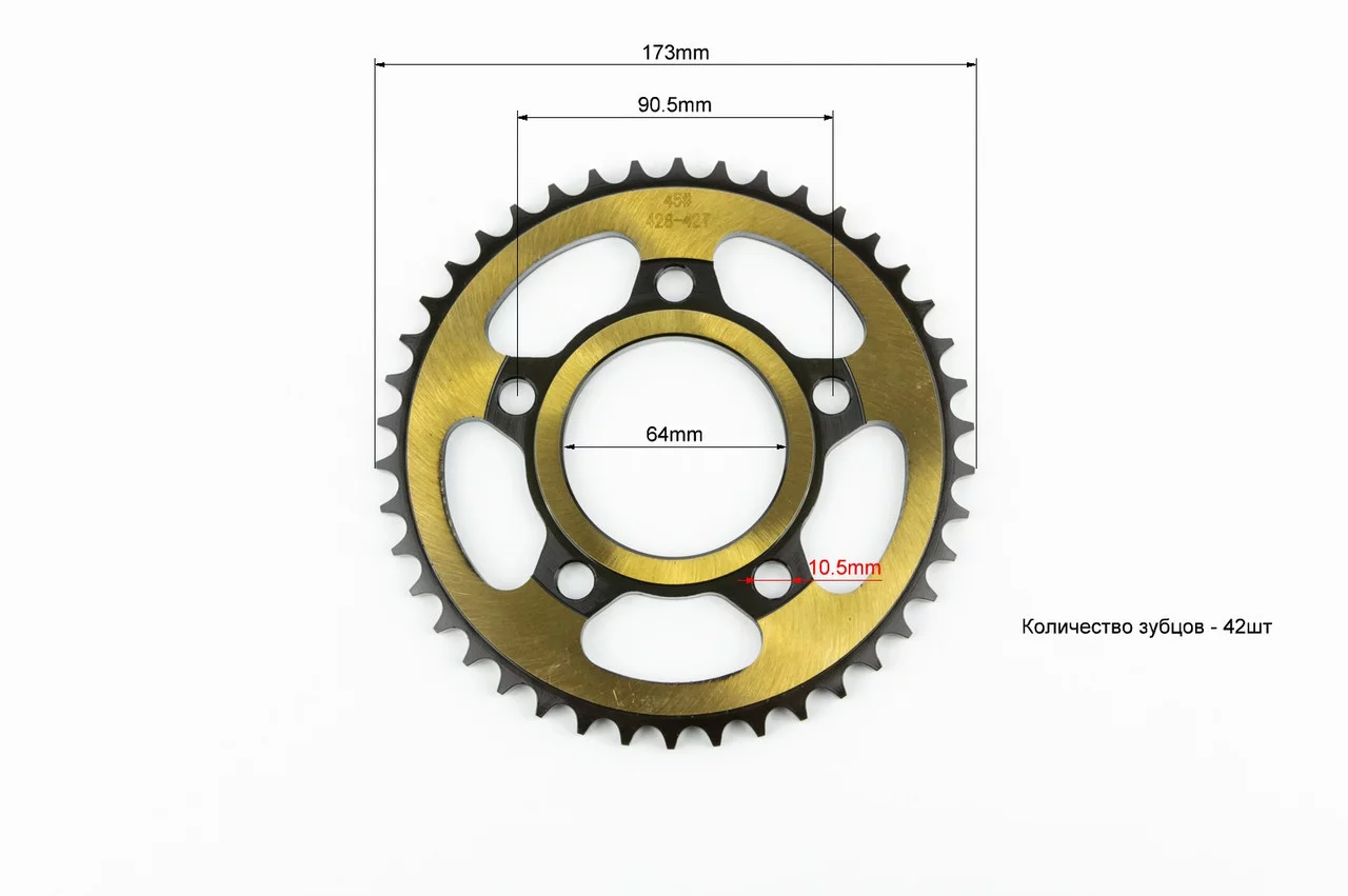 Звезда задняя 428-42T-d-64; 5отв.*90,5мм, ЗЧ-МОТО