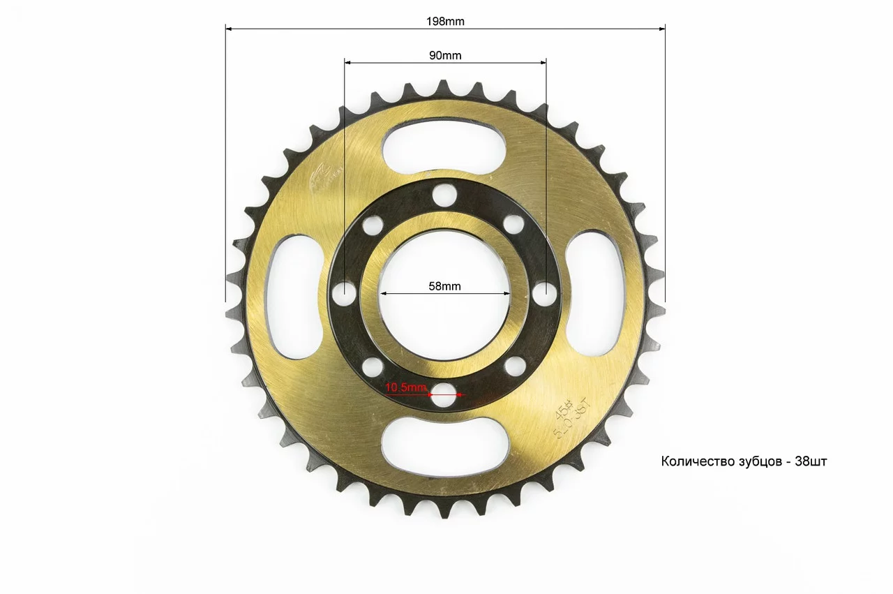 Звезда задняя 520-38T-d-58; 4отв.*90мм, "калёная" TEKEN/Loncin/CBF200-250/Scrambler 250, ЗЧ-МОТО, YQ-359396