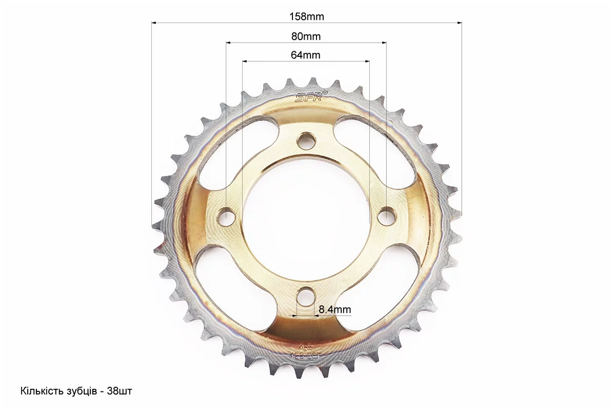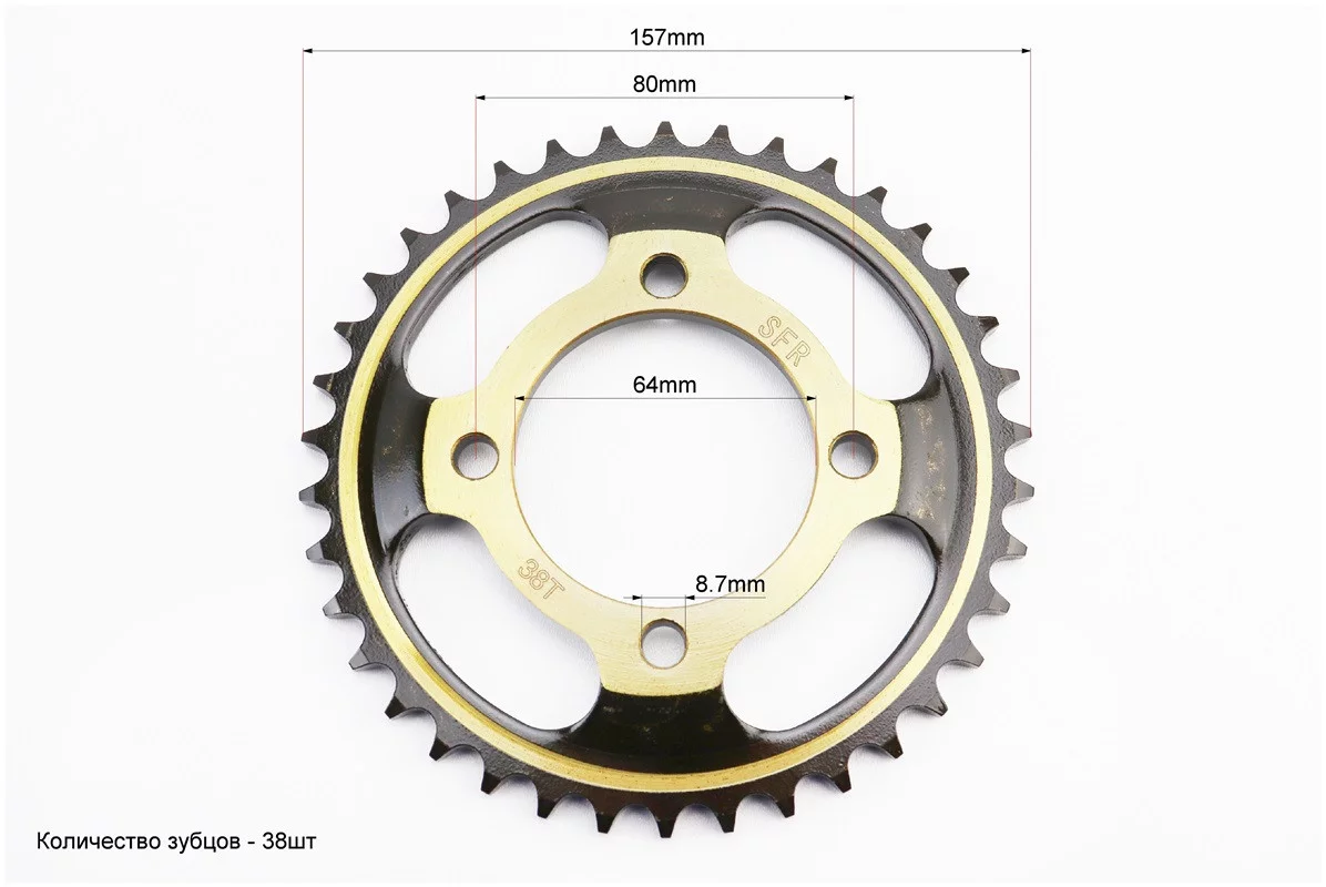 Звезда задняя FXD125 - 428-38T - d=64; 4отв.*80mm "каленая" Viper F5, FIX-505267