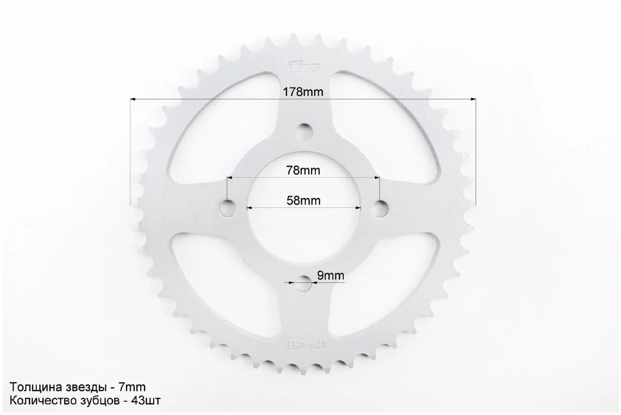 Отзывы Звезда задняя JD125-428-43Т-d-58; 4отв.*78мм, ЗЧ-МОТО, YQ-321262