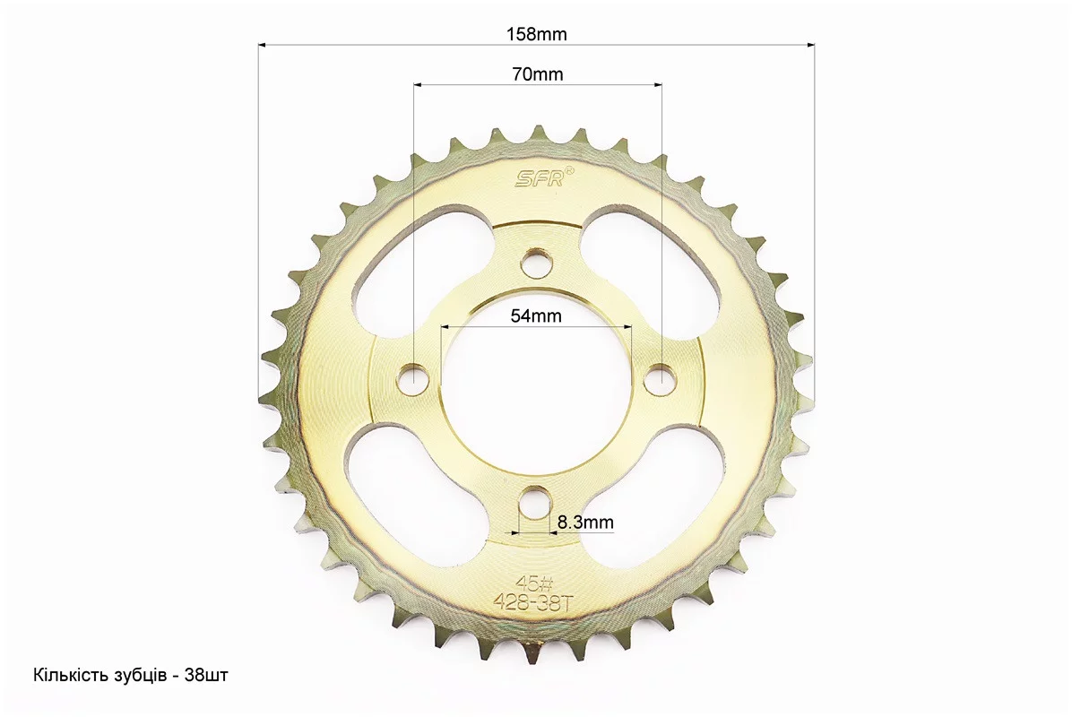 Звезда задняя JH - 428-38T - d=54; 4отв.*70mm "каленая"