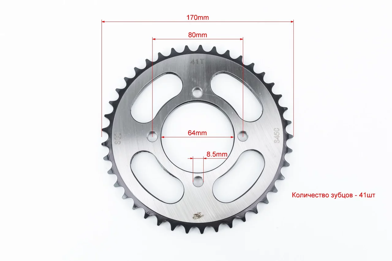Звезда задняя RS125-428-41T-d-64; 4отв.*80мм "калёная" Loncin- JL200-10/Yamaha YBR125, ЗЧ-МОТО