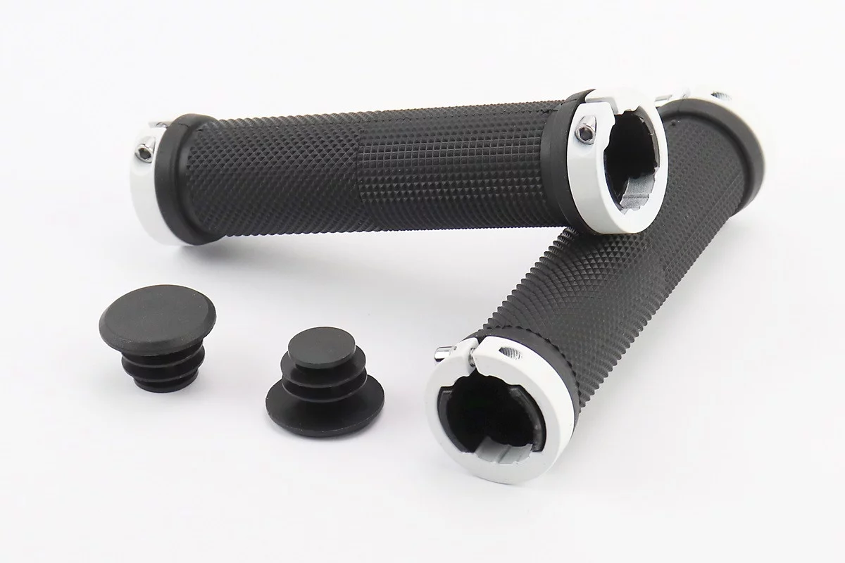 Ручки керма 130мм з затискачем Lock-On з двох сторін, чорно-білі FL-426