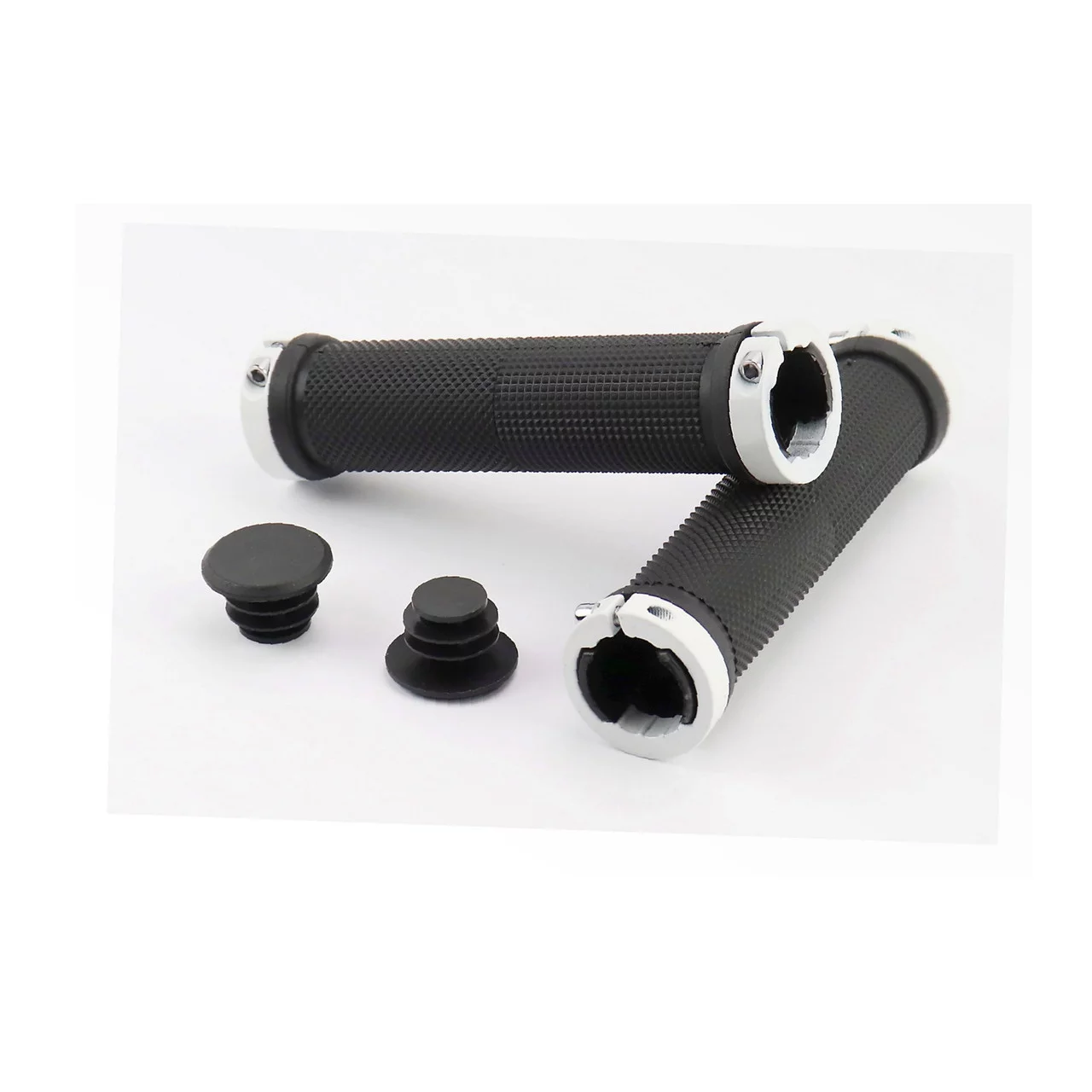 Ручки керма 130мм з затискачем Lock-On з двох сторін, чорно-білі FL-426, ВЕЛОЗАПЧАСТИНИ