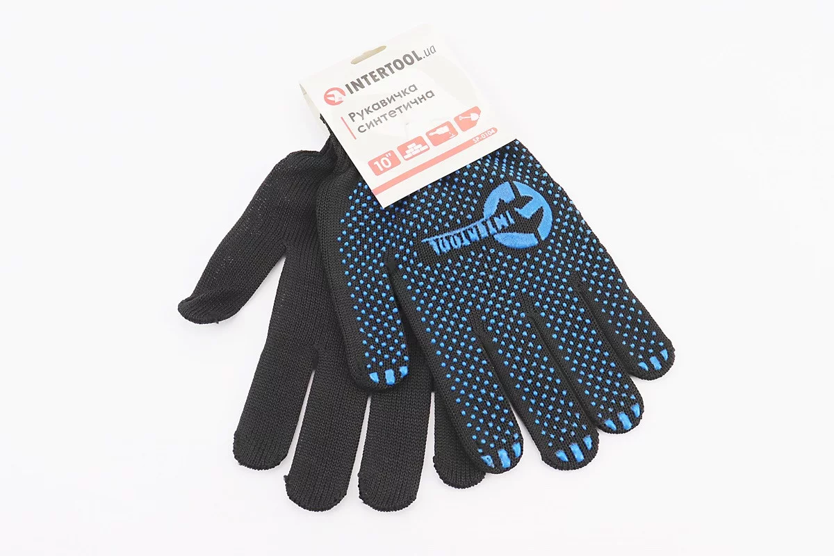 Відгуки Рукавиці робочі 100% поліестер 10", клас в'язки 7, чорний, синя ПВХ точка SP-0104, FIX-703221