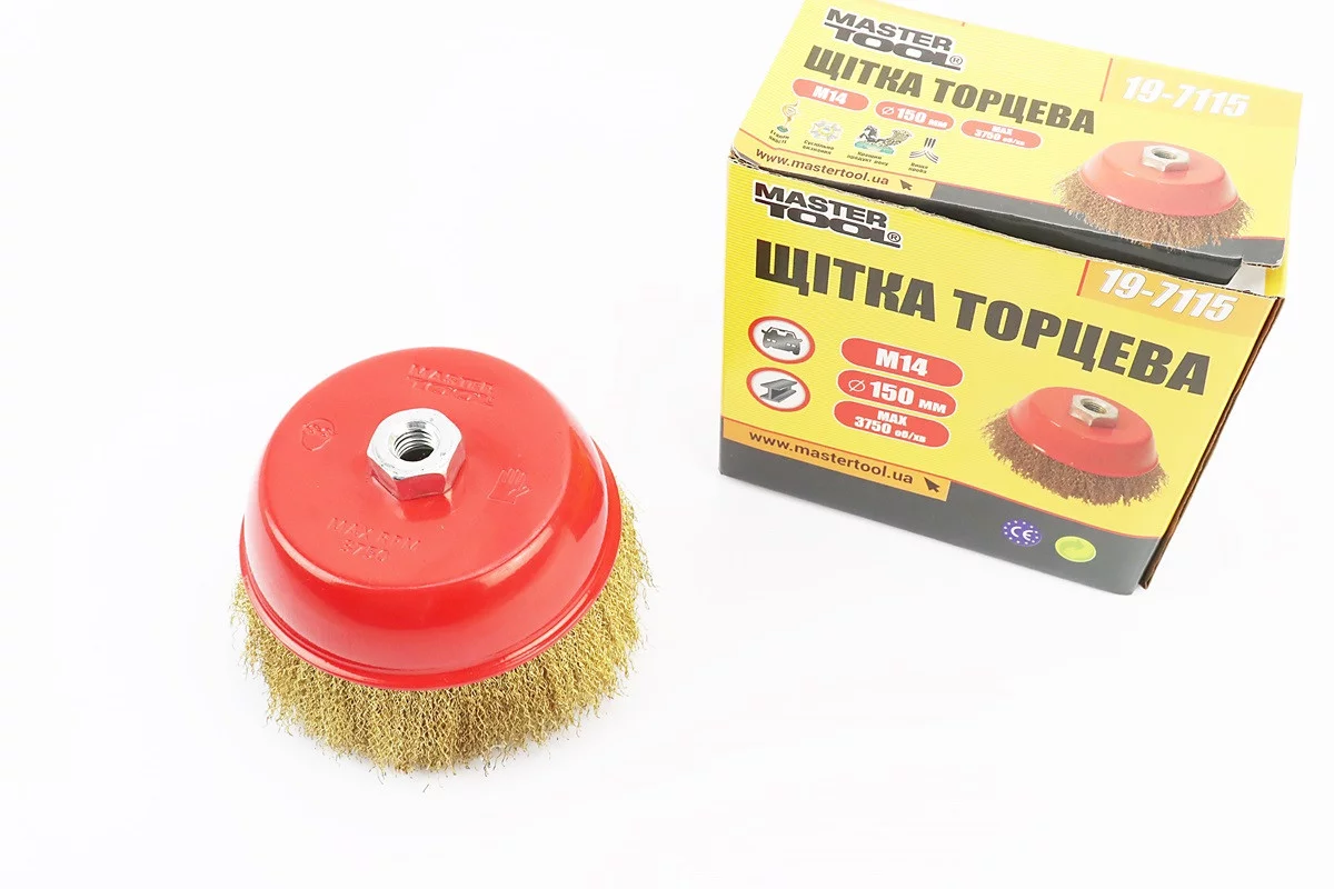 Відгуки Щітка торцева М14 D-150мм з латунованого рифленого дроту 19-7115, FIX-703090