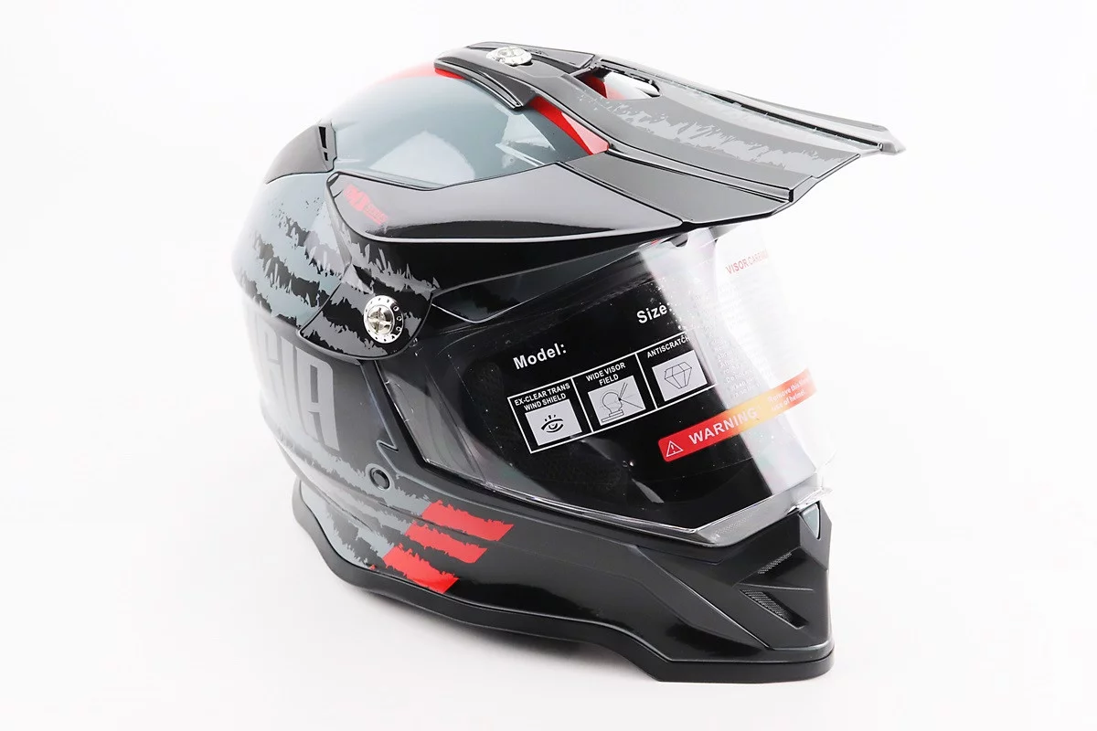 Шолом кросовий/ендуро/АТV зі склом BLD-819-7 S (55-56см), ЧОРНИЙ/СІРО-ЧЕРВОНИЙ
