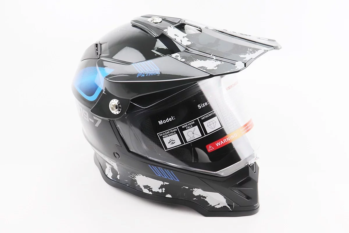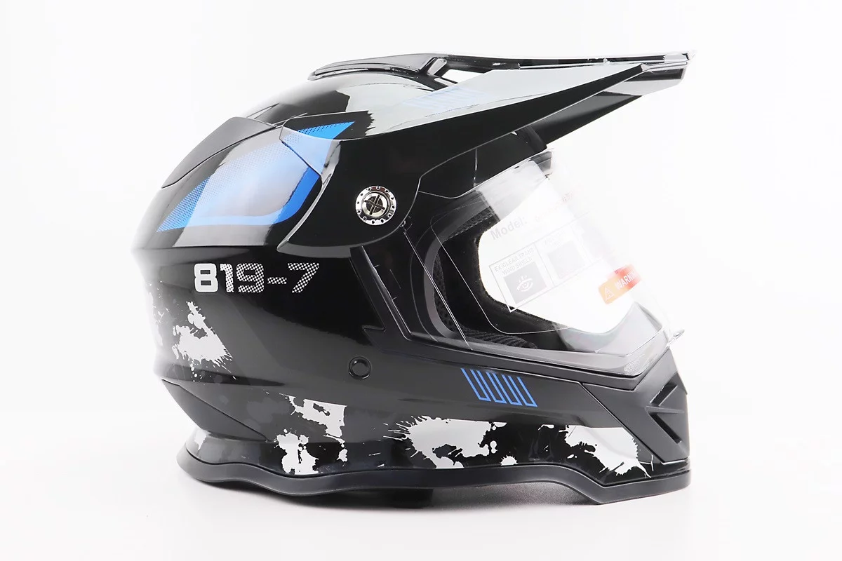 Шолом кросовий/ендуро/АТV зі склом BLD-819-7 S (55-56см), ЧОРНИЙ/СІРО-СИНІЙ