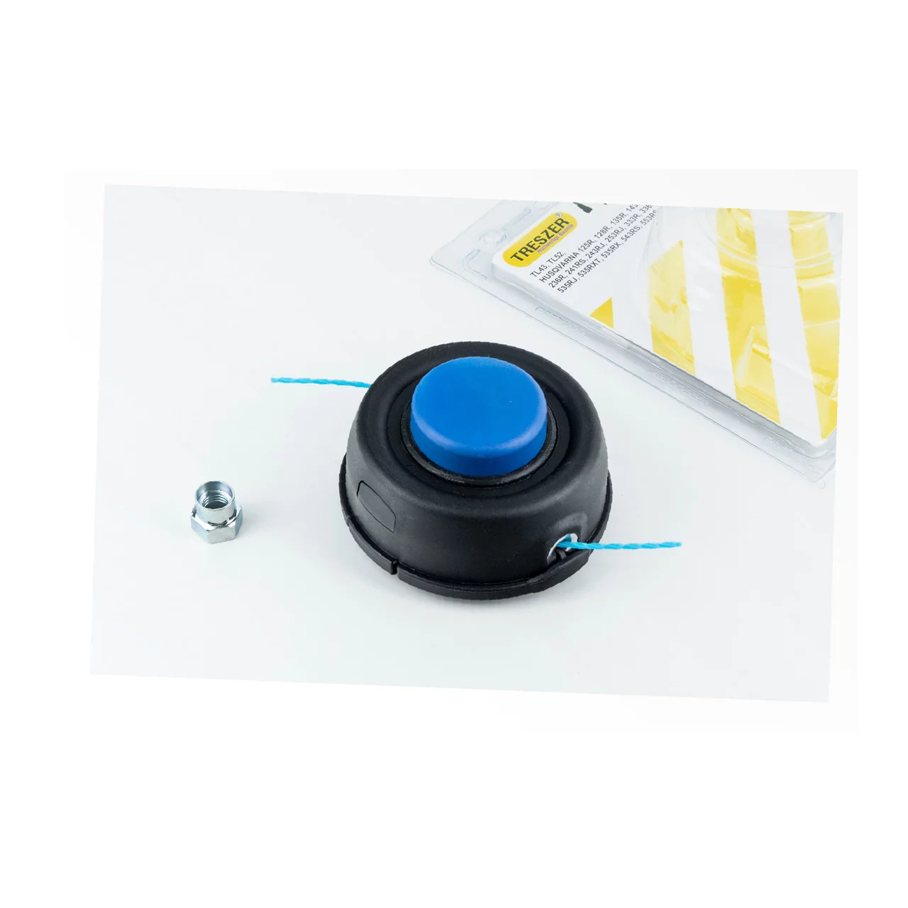Шпуля (бабина, котушка), САМОНАМОТУЮЧА, синій ніс, під вал М12х1,75 + перехідник М10х1,25, D-130мм на блістері, ТРИМЕР, YQ-213620
