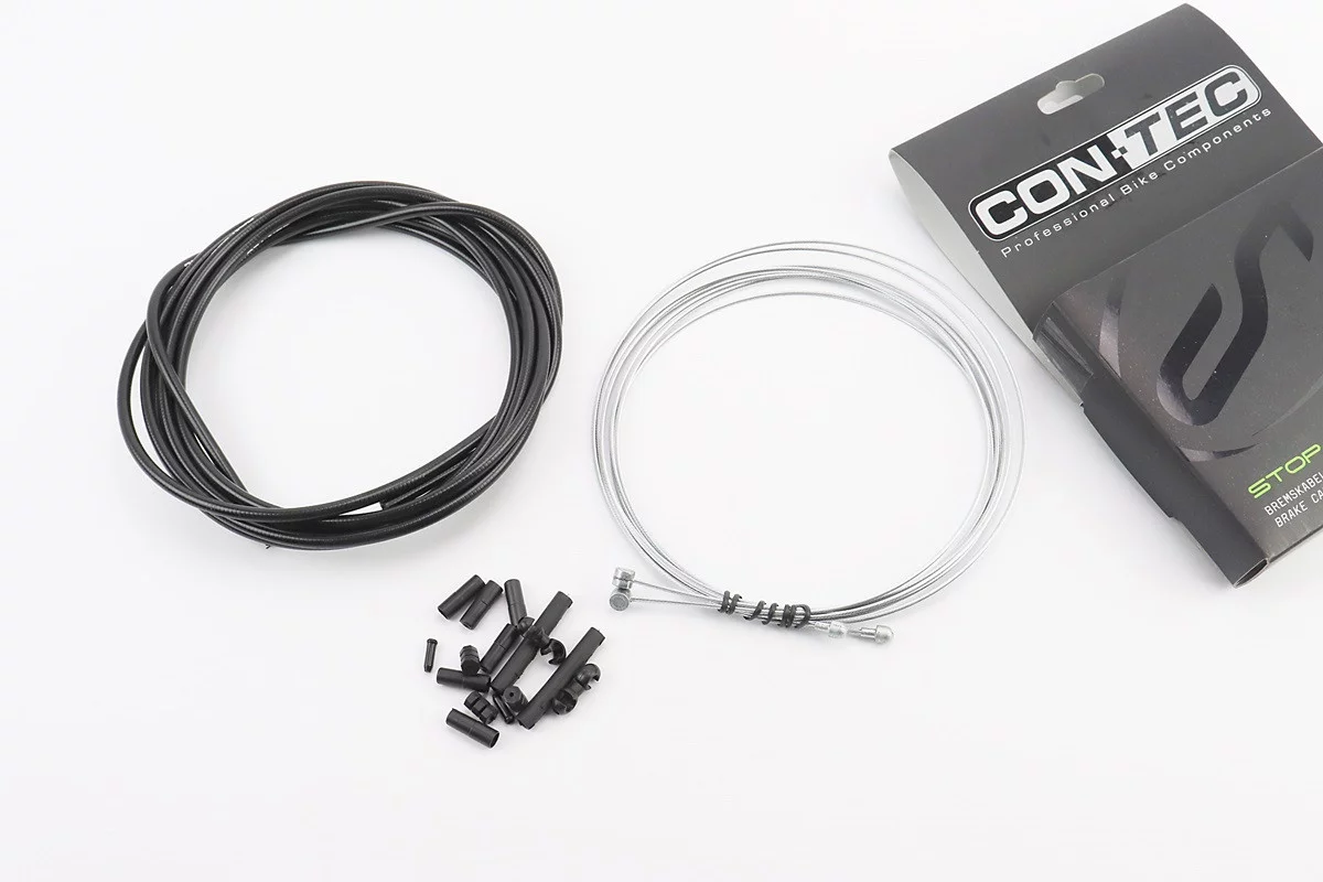 Трос - комплект гальмівний універсальний "ПОВНИЙ" (сорочка 5мм х 3м, троса Galvanize 1350/2350мм, ковпачки, кінцевики, фіксатори, захист рами), чорний
