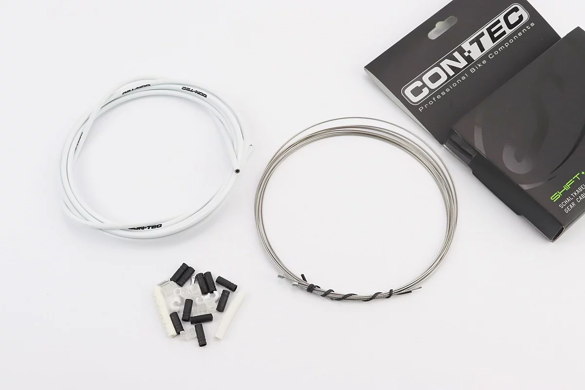 Трос - комплект перемикання універсальний "ПОВНИЙ" (сорочка 4мм х 2,7м, троса Slick Stainless 2000/2300мм, ковпачки, кінцівки, фіксатори, захист рами), білий