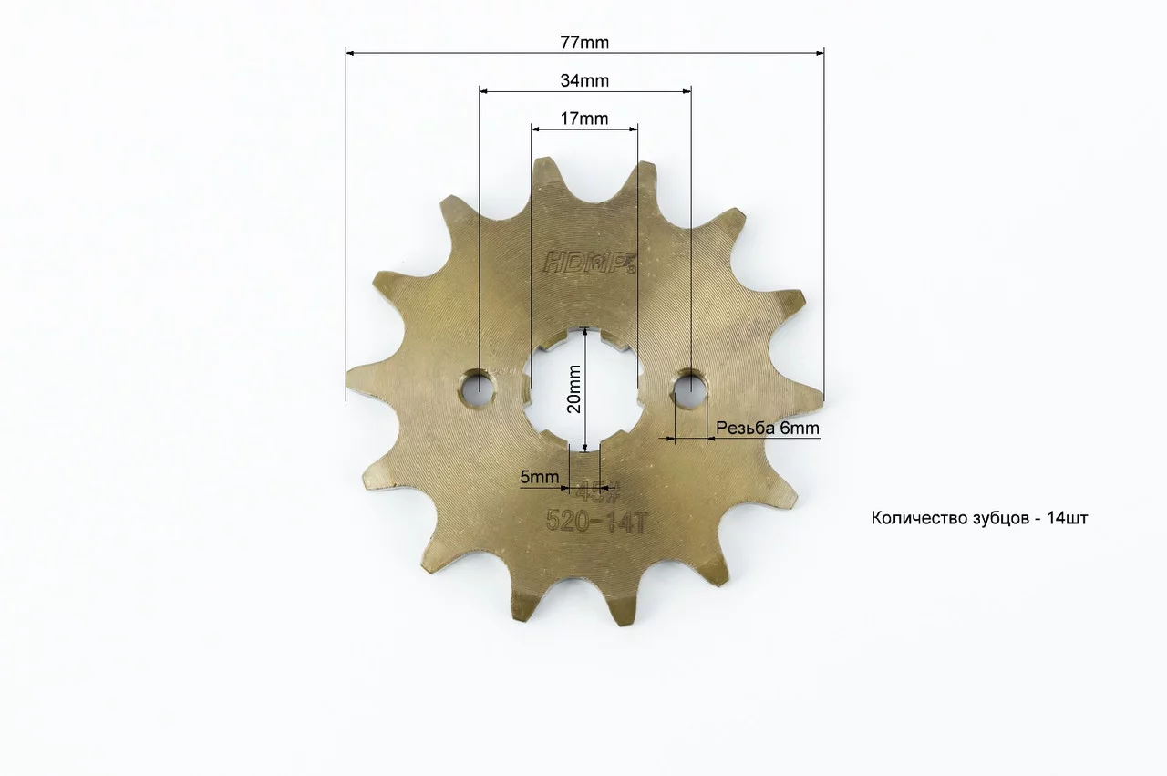 Зірка передня CG/CB-520H-14T (шліц 5мм) "гартована" Loncin LX250GY-3/Scrambler 250, ЗЧ-МОТО