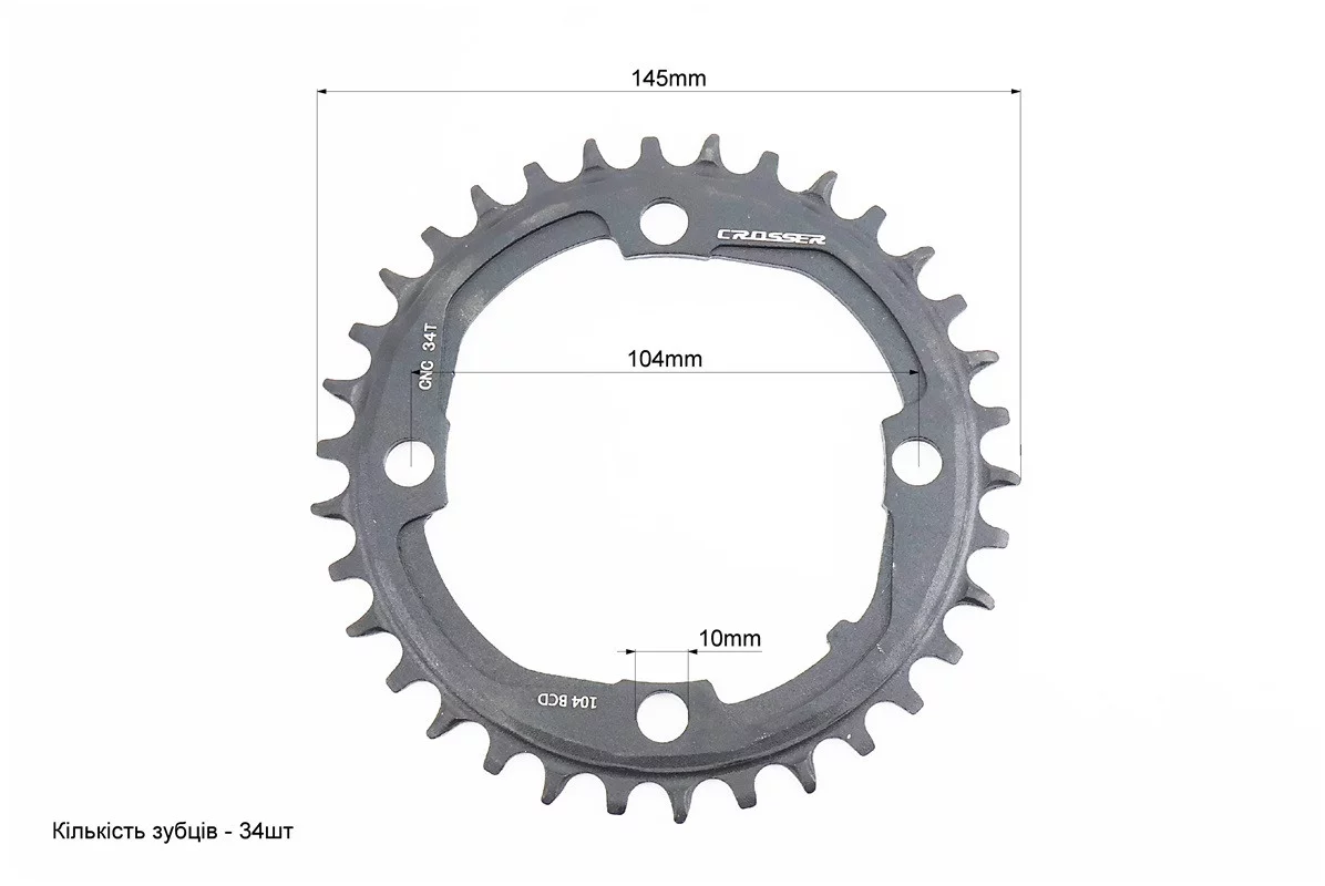 Відгуки Зірка передня MTB Narrow Wide 34Т (BCD:104мм), алюмінієва, чорна, FIX-210371