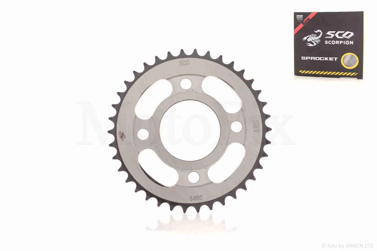 Зірка трансмісії задня 4-90/64 d58, D160 428-38T WY125 "SCORPION", QT-039316