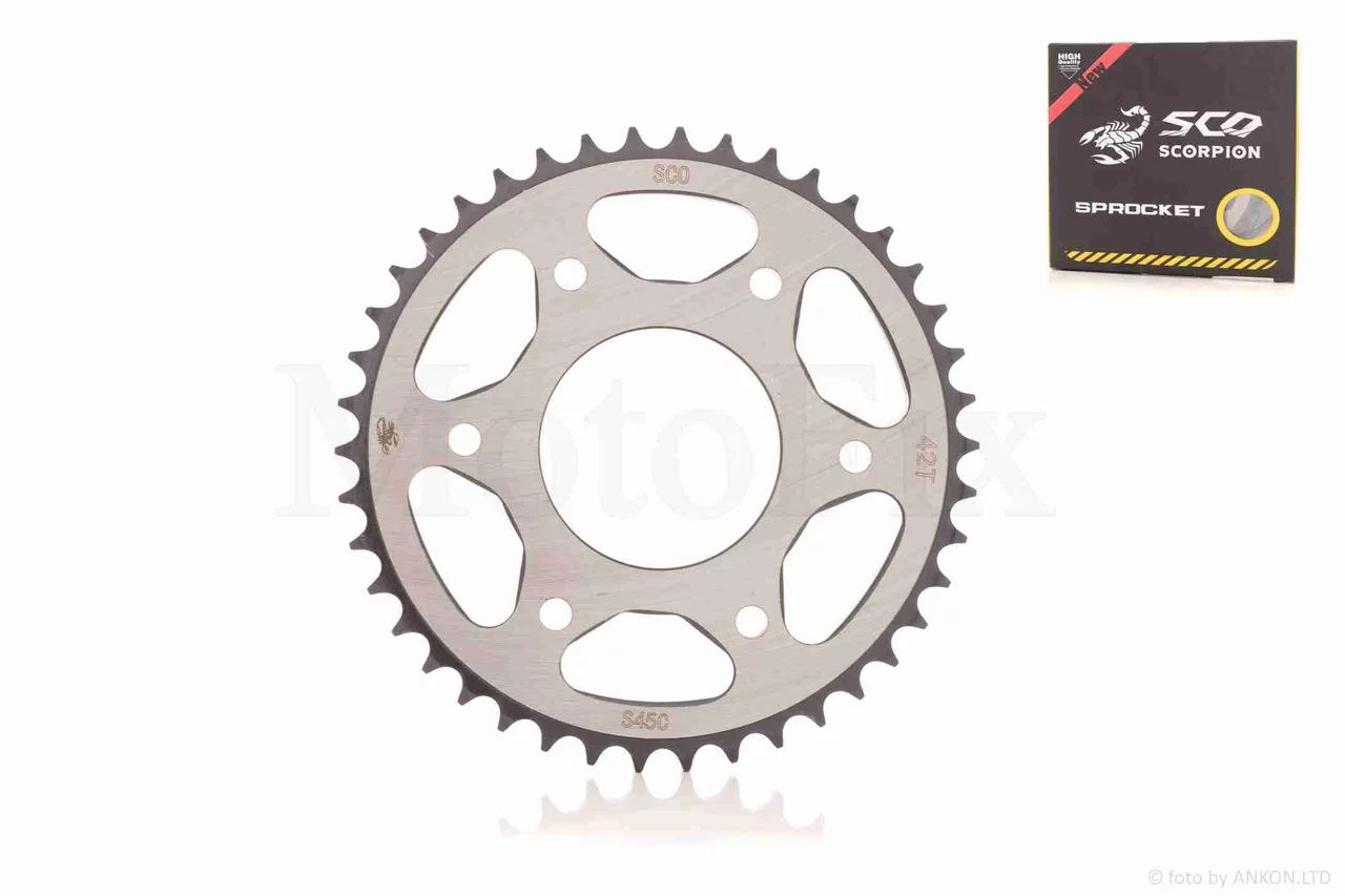 Зірка трансмісії задня 5-90/57, d64, D175 428-42T V200/250-F2 "SCORPION"