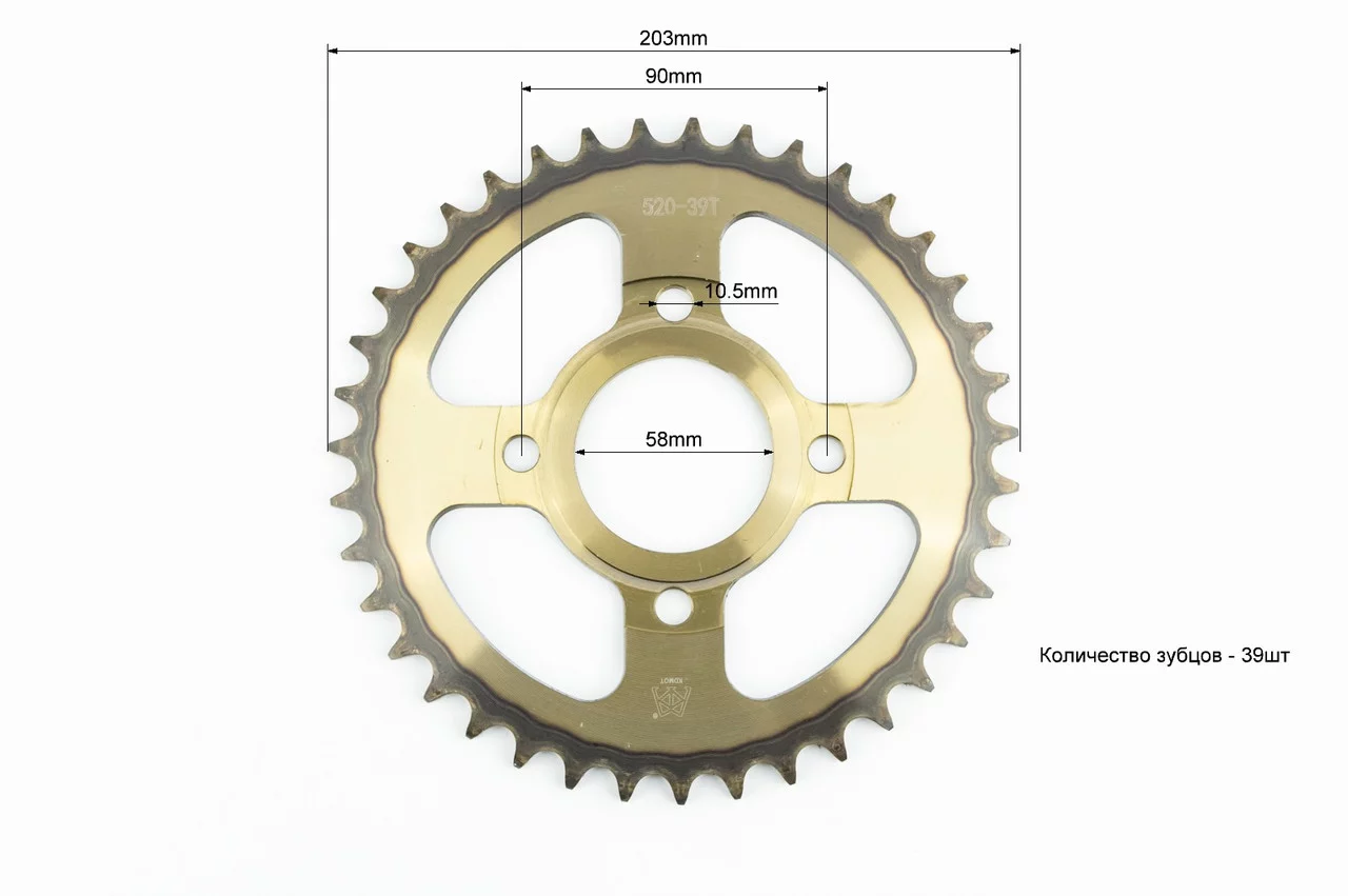 Зірка задня 520-39T-d-58; 4отв.*90мм, "гартована" TEKEN/Loncin/CBF200-250/Scrambler 250, ЗЧ-МОТО