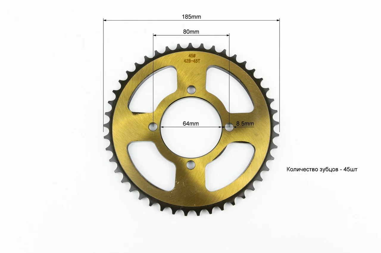 Зірка задня RS125-428-45T-d-64; 4отв.*80мм "гартована" (V200N), ЗЧ-МОТО, YQ-505376