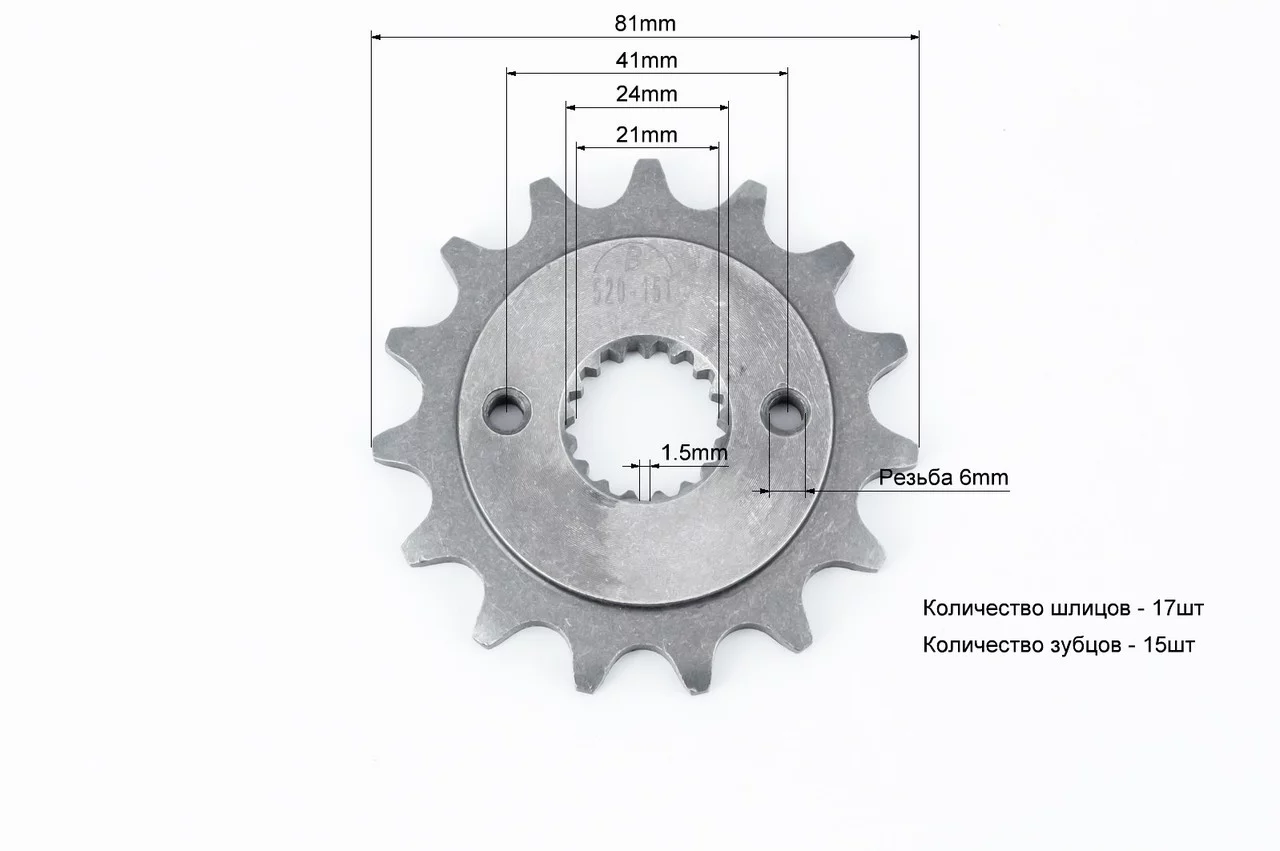 Звезда передня CG/CB-520H-15T (17 шлиців) XY400GY-3 ELCROSSO, ЗЧ-МОТО, YQ-351803